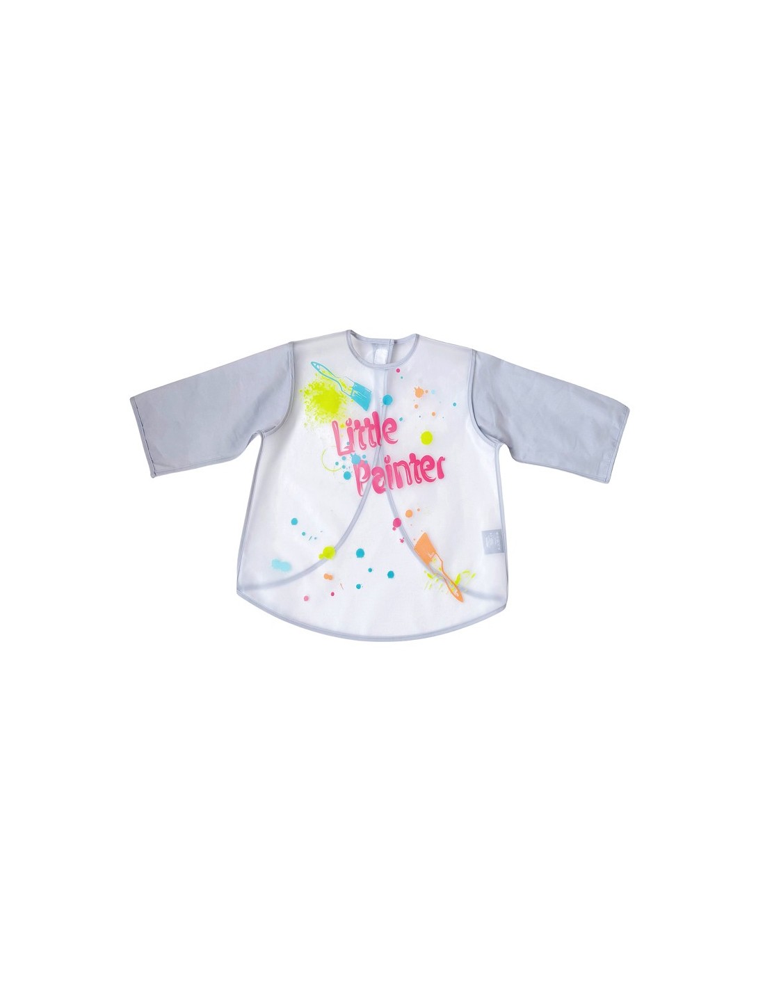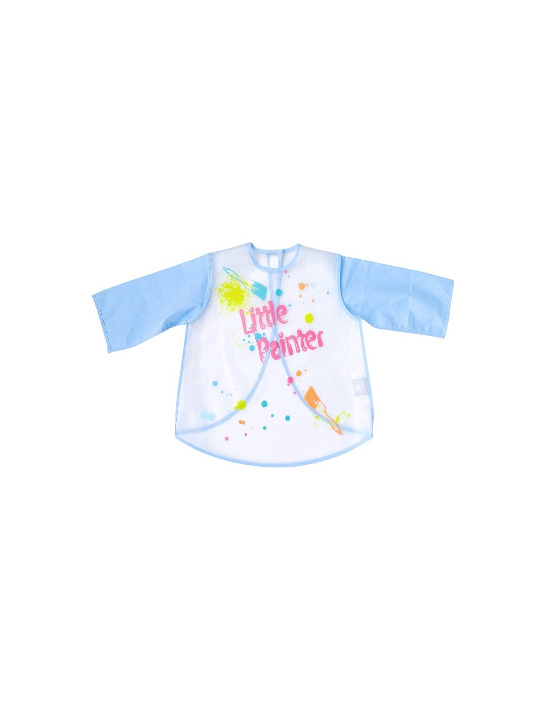 Con dibujo central de pinceles y gotas de pintura y texto ''Little painter''.