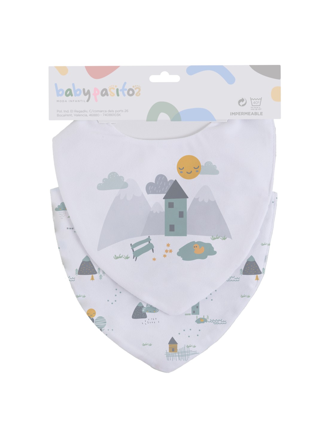 Babero bandana en pack de 2 marca Baby Pasitos casitas