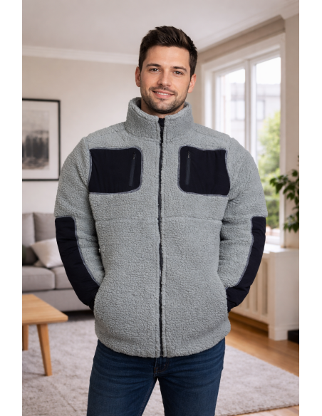 Batas de hombre Bata corta de hombre con cremallera marca Carwin efecto pana CARWIN CARD503 Bata corta de hombre con bolsillos laterales y en el pecho. Composición: 100% poliéster. View