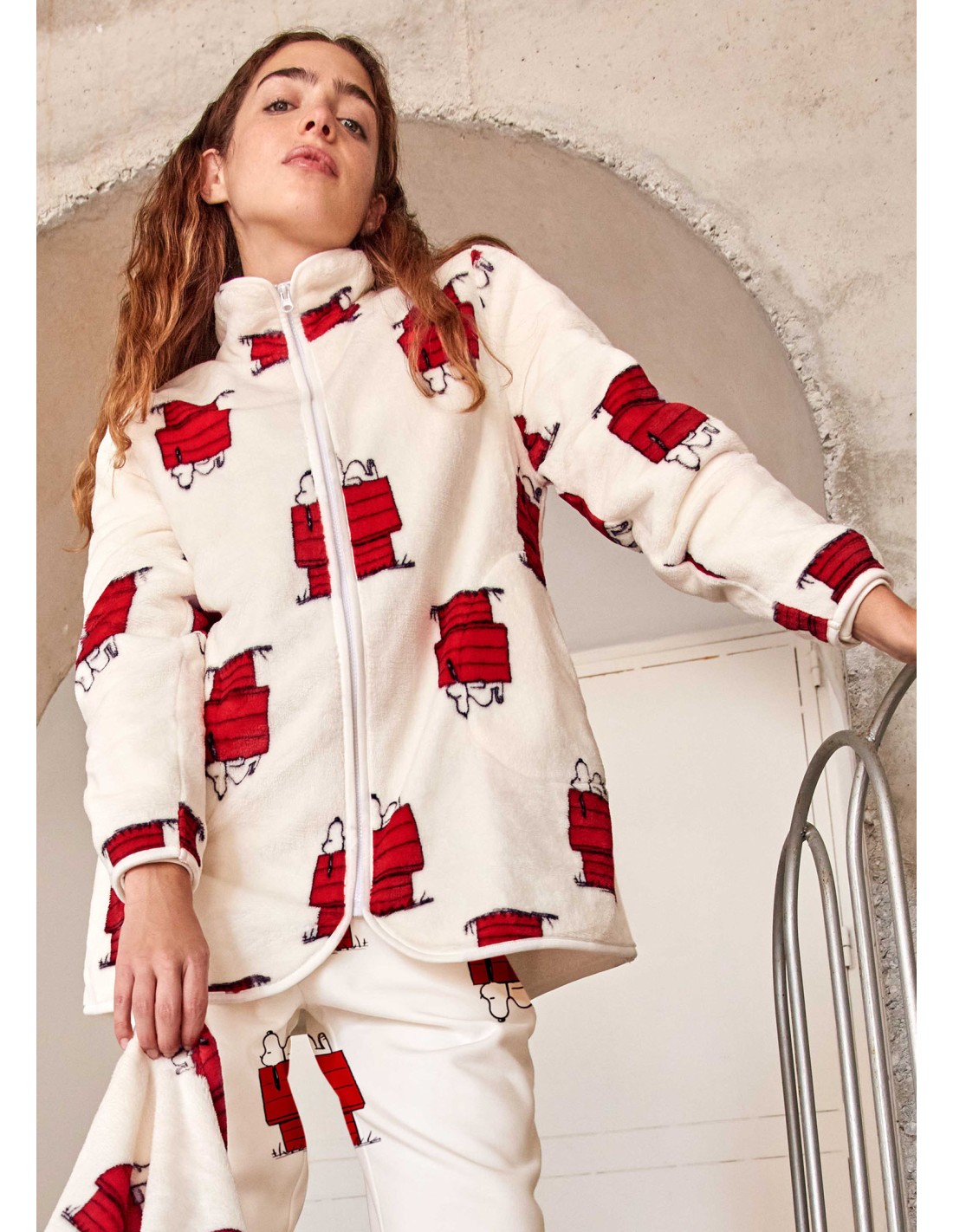 Bata corta de mujer con cremallera marca Gisela Snoopy