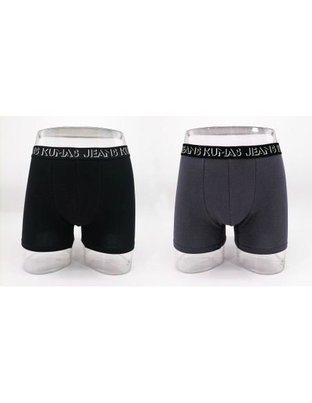 Pack de 2 bóxers de hombre de color negro y gris con elástico antipresión que ajusta la prenda a la fisionomía sin oprimir.