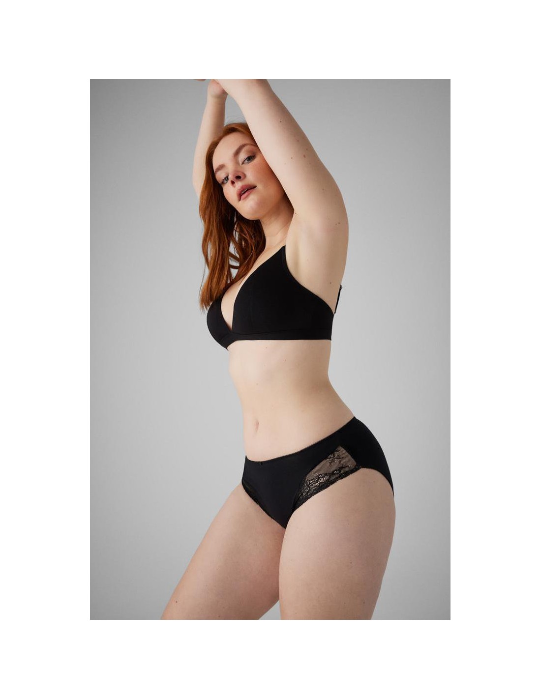 Lilac in Paris. Braga midi con los laterales adornados con un encaje decorativo.