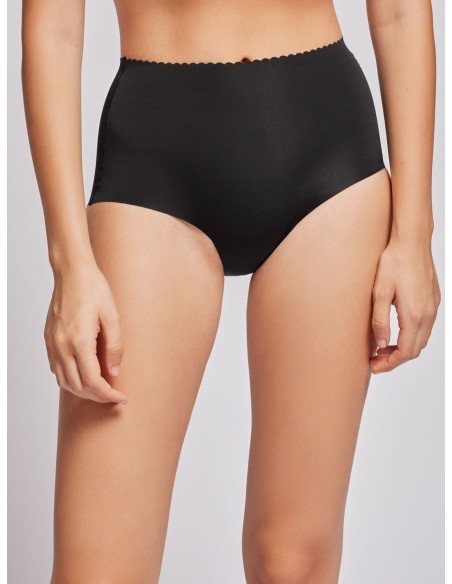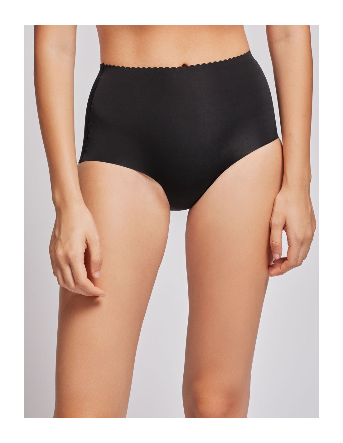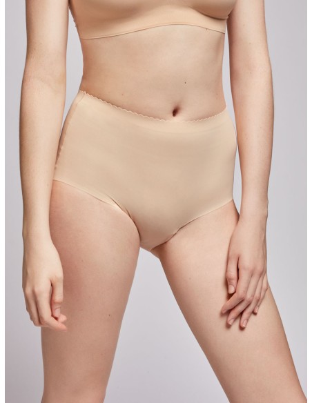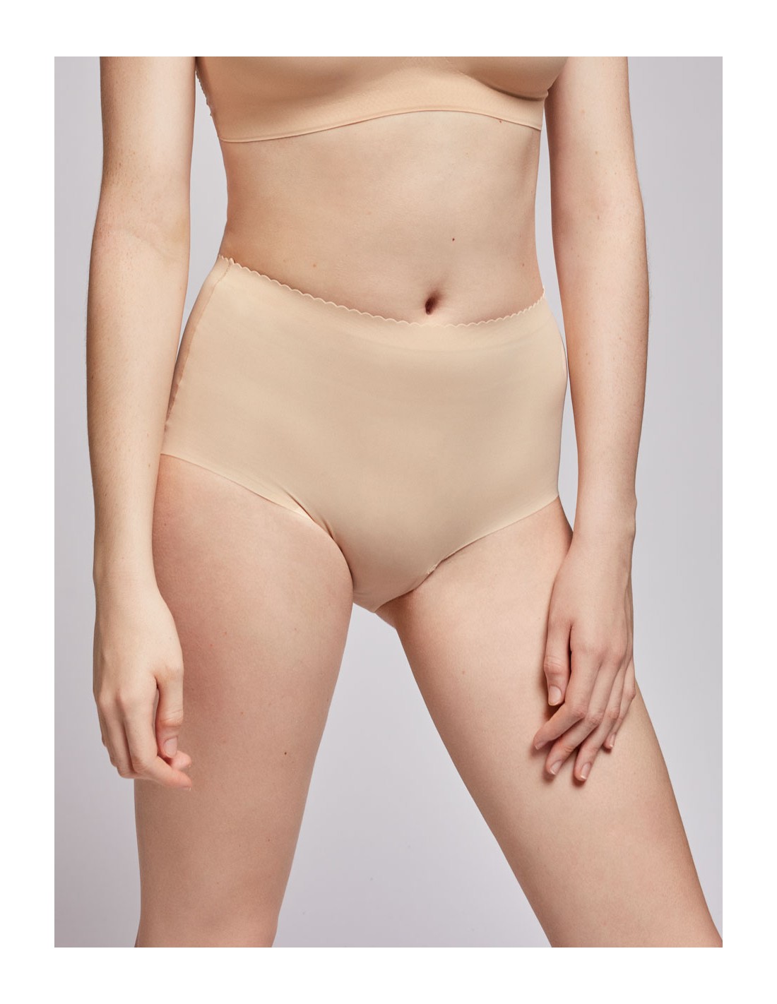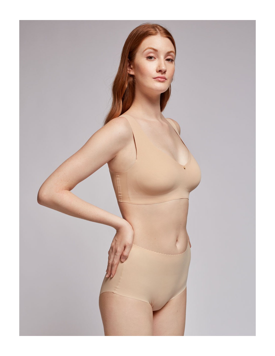 Braguita alta invisible en tejido de microfibra con cintura termofusionada y corte láser para evitar marcas bajo la ropa.