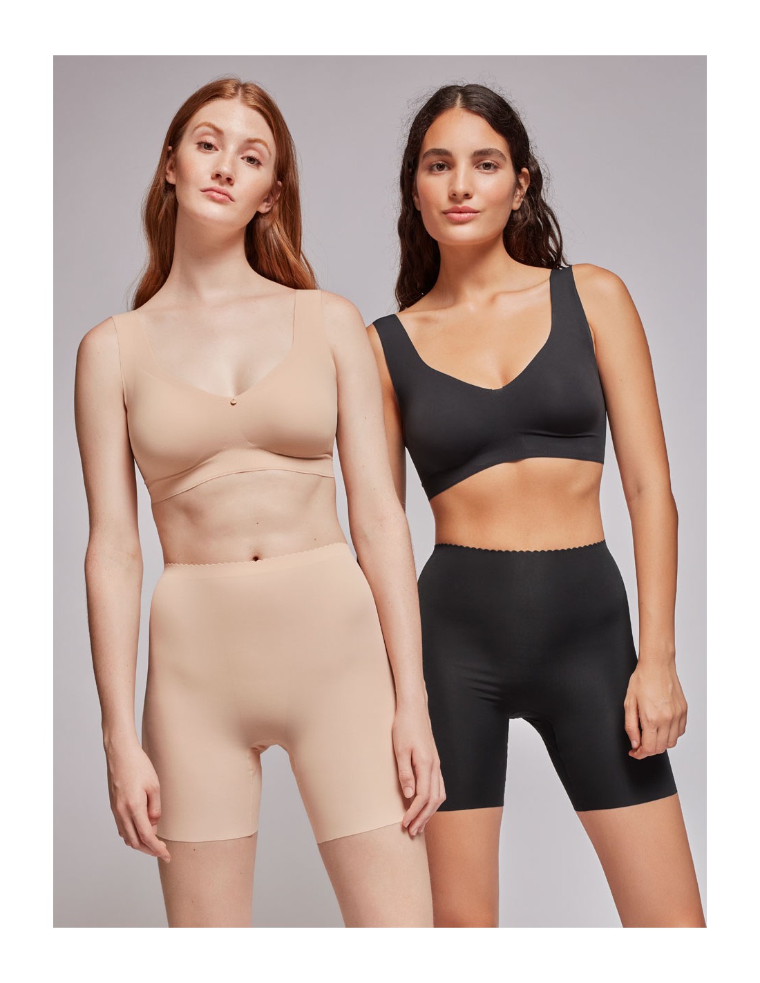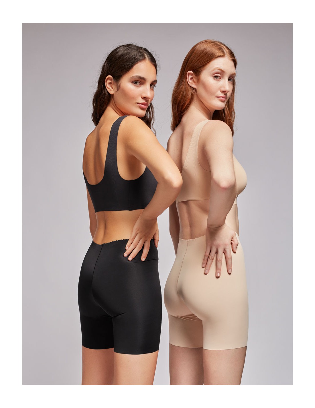 Pantalón moldeador invisible en tejido de microfibra con cintura termofusionada y corte láser para evitar marcas bajo la ropa.