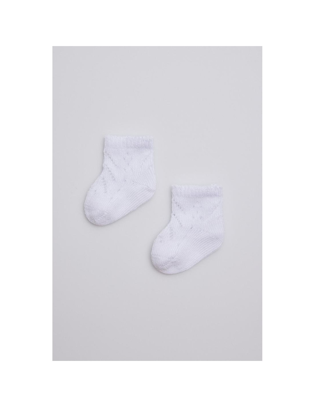 Calcetín básico recién nacido. Tejido en suave calado en algodón, se ajusta ergonómicamente al pie del bebé evitando que deslice. Cuidado prenatal asegurado con el puño especial antipresión. El confort necesario para los más pequeños de la casa.