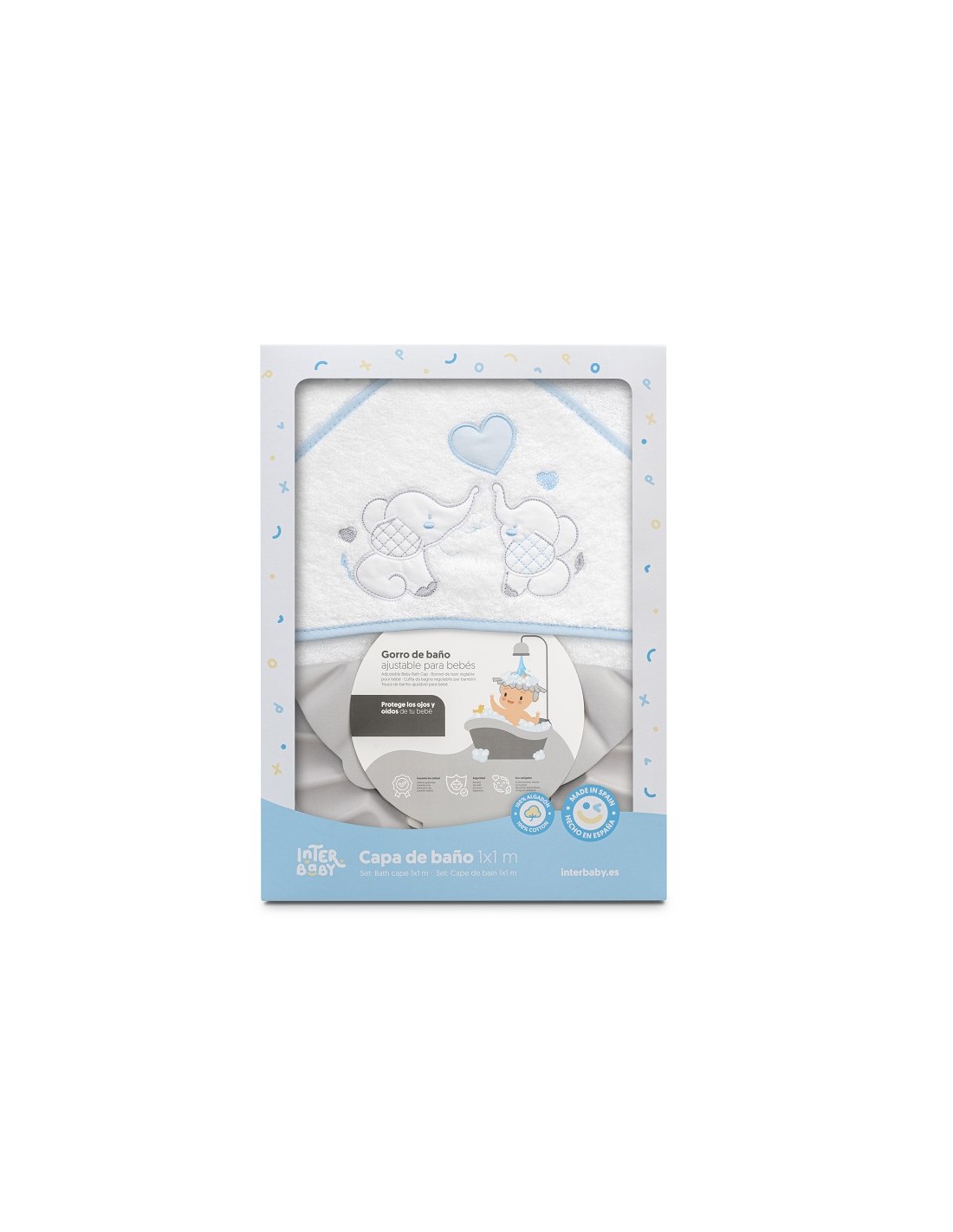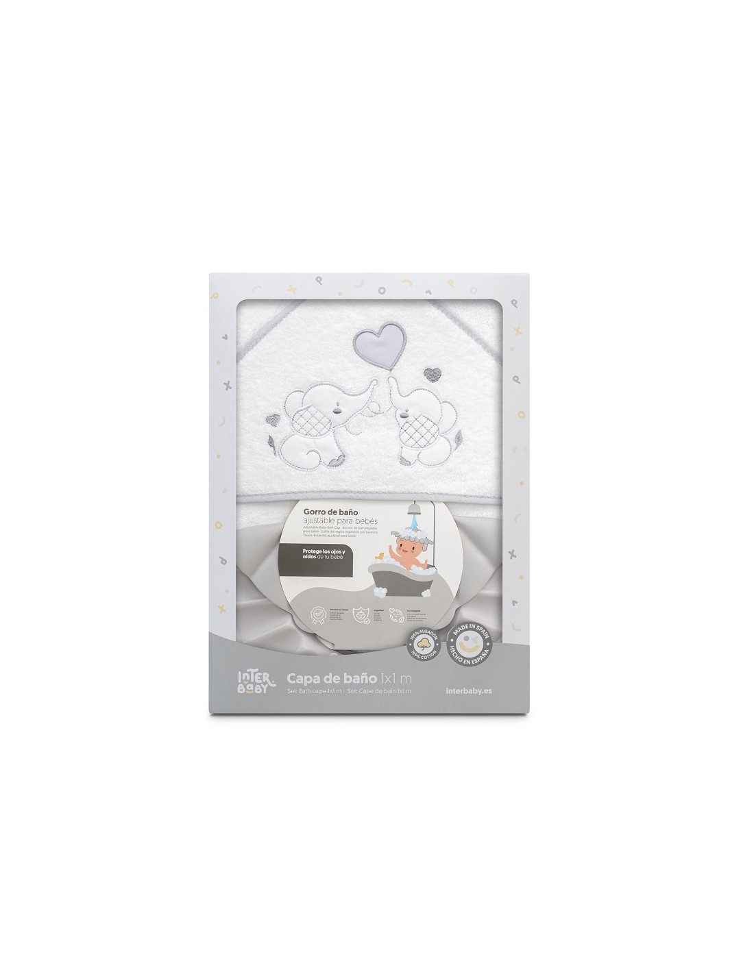 Capa de baño con gorro de baño para bebé marca Interbaby elefantitos