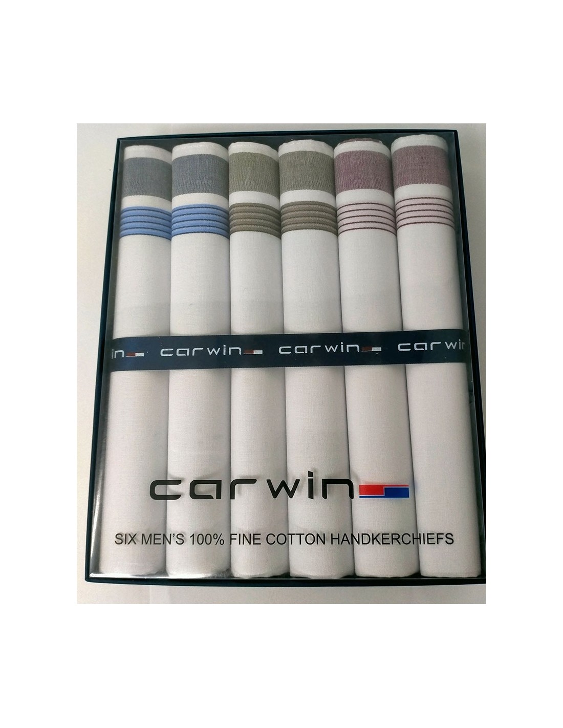 Pañuelos de algodón blancos con franjas en caja de 6 unidades