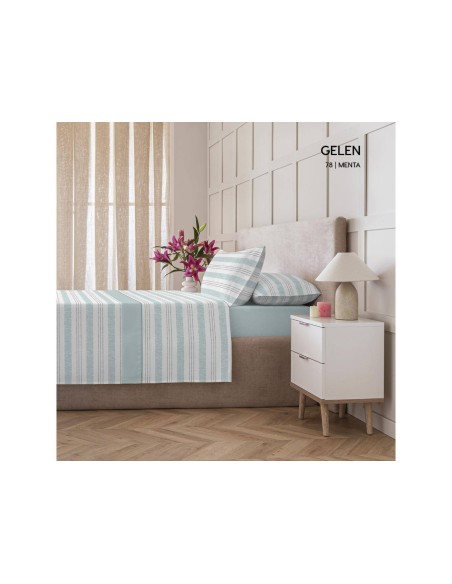Juego de sábanas compuesto por sábana encimera, sábana bajera ajustable y funda de almohada.