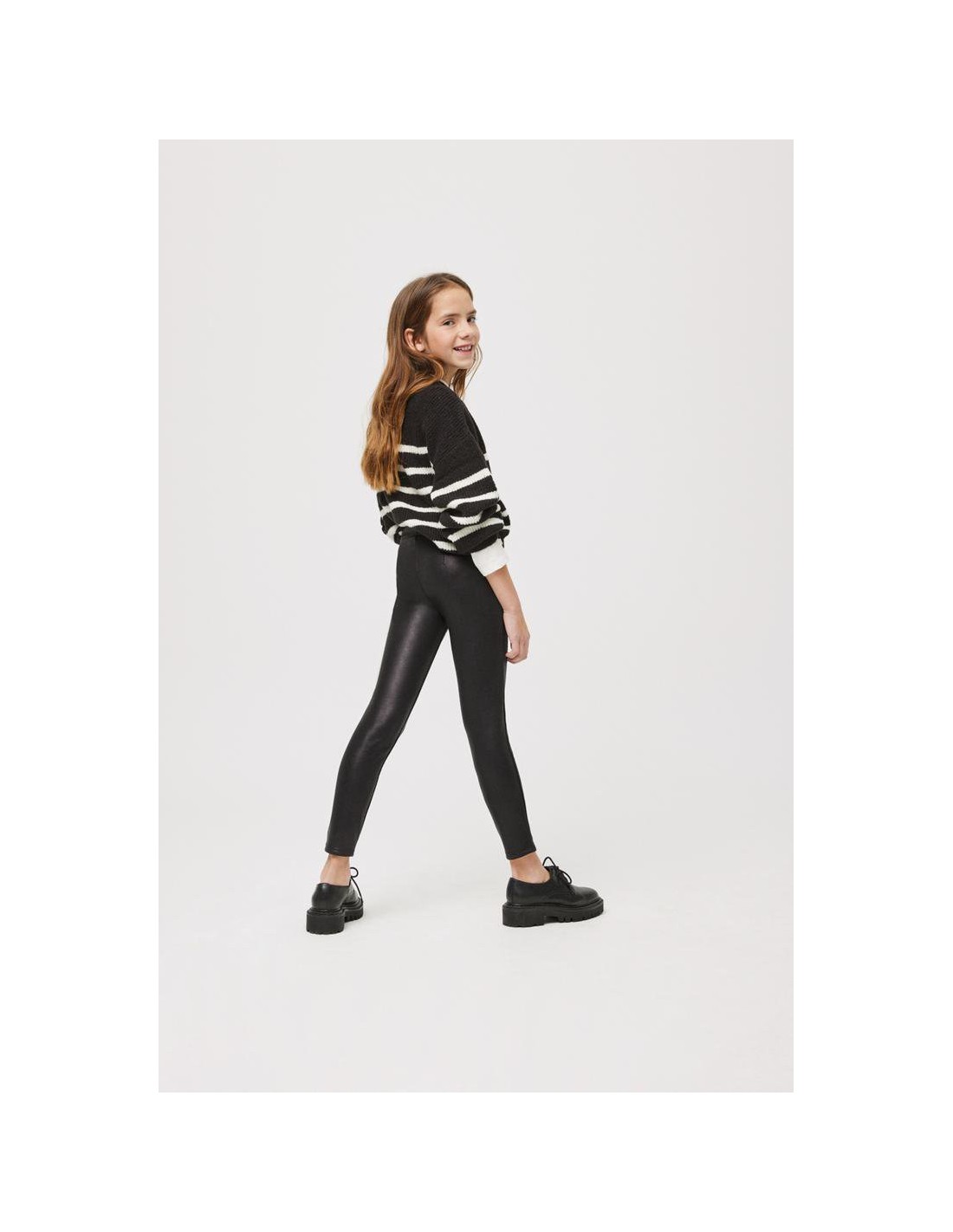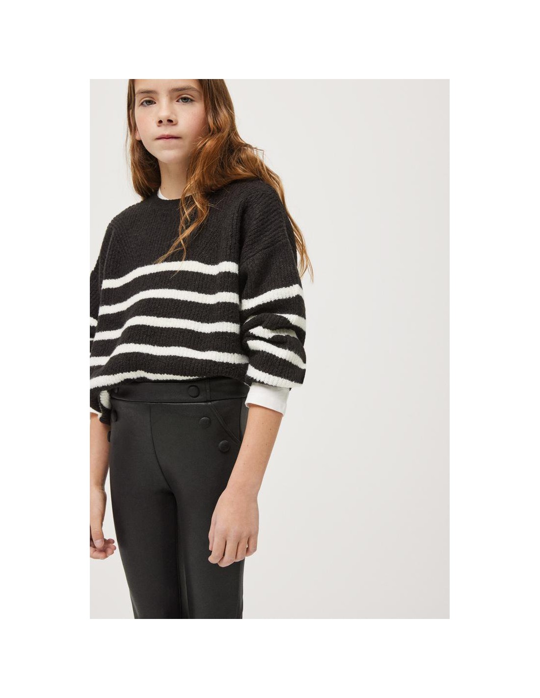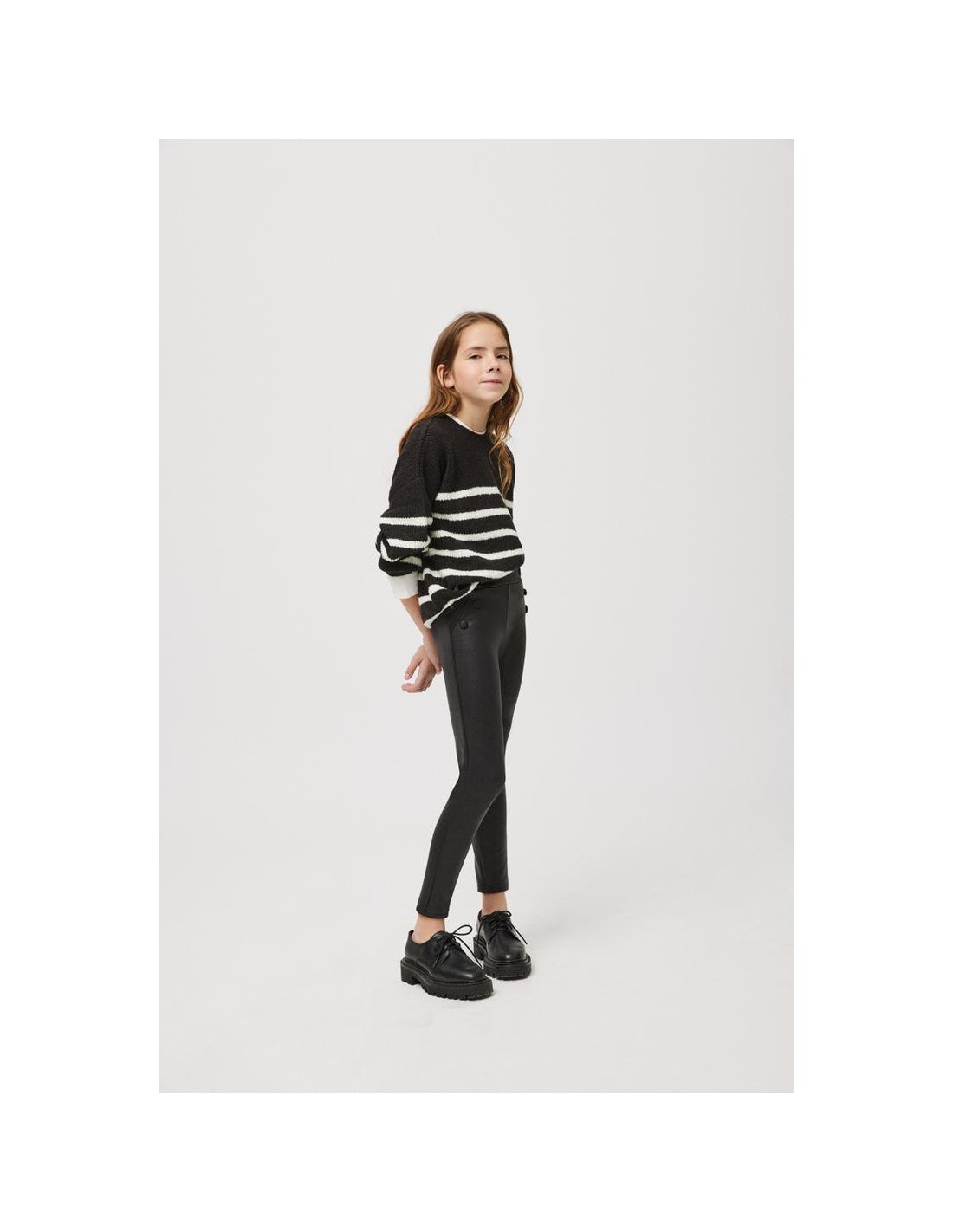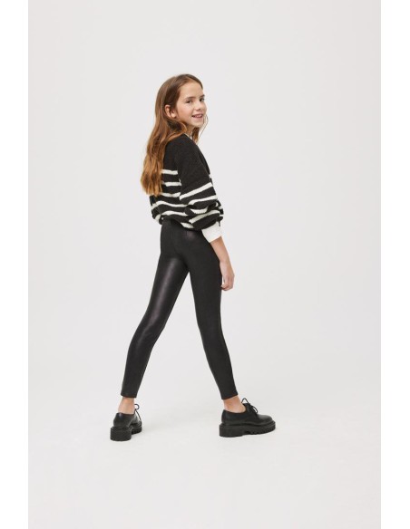 Leggings térmicos de niña efecto piel con interior afelpado y botones decorativos forrados en la parte frontal. Elásticos de ajuste perfecto y cómodos. Incorpora y cinturilla elástica regulable con botón para mejor ajuste de talla. Disponibles en negro y en rojo. También disponible para mujer. Colección Mini Me.