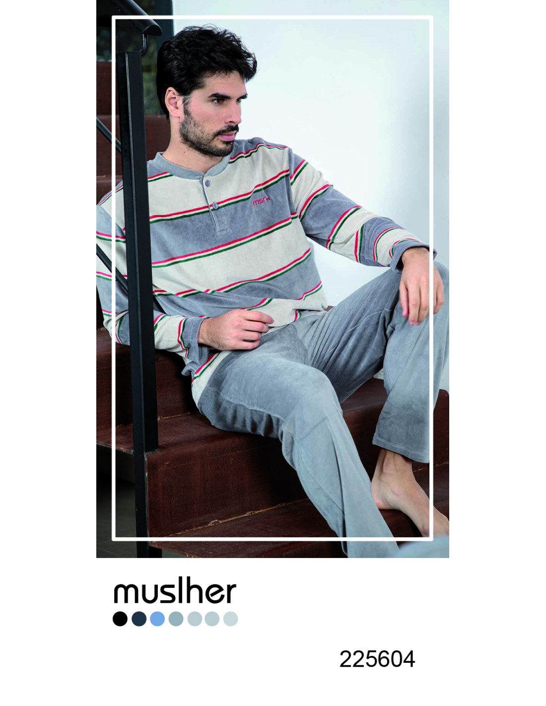 Otoño-Invierno para hombre Pijama para hombre de punto milano marca Muslher pantalón a cuadros MUSLHER MUS235617 Pijama de hombre de marca Muslher de Punto Milano. Compuesto por camiseta con cierre de 3 botones en el cuello y bolsillo en el pecho; y pantalón color azul marino a cuadros. View