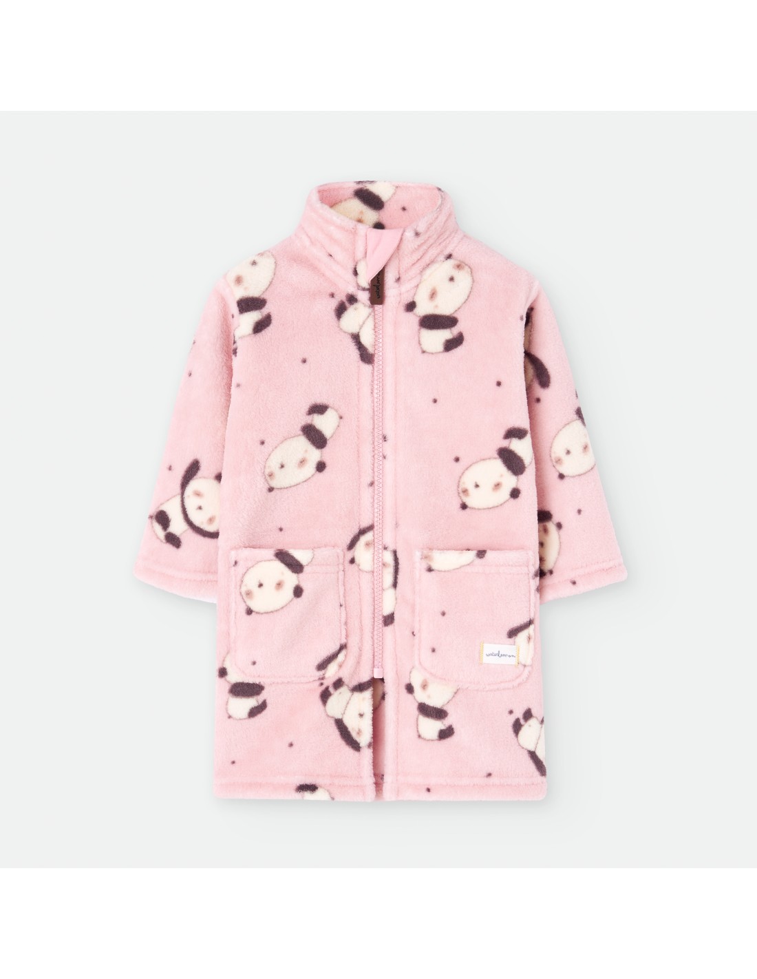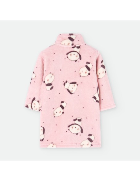 Bata de bebé para estar por casa de color rosa con estampado de osos panda.