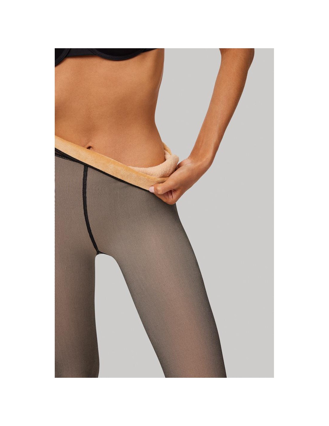 Panty térmico transparente de color negro; de 190 deniers con interior afelpado.