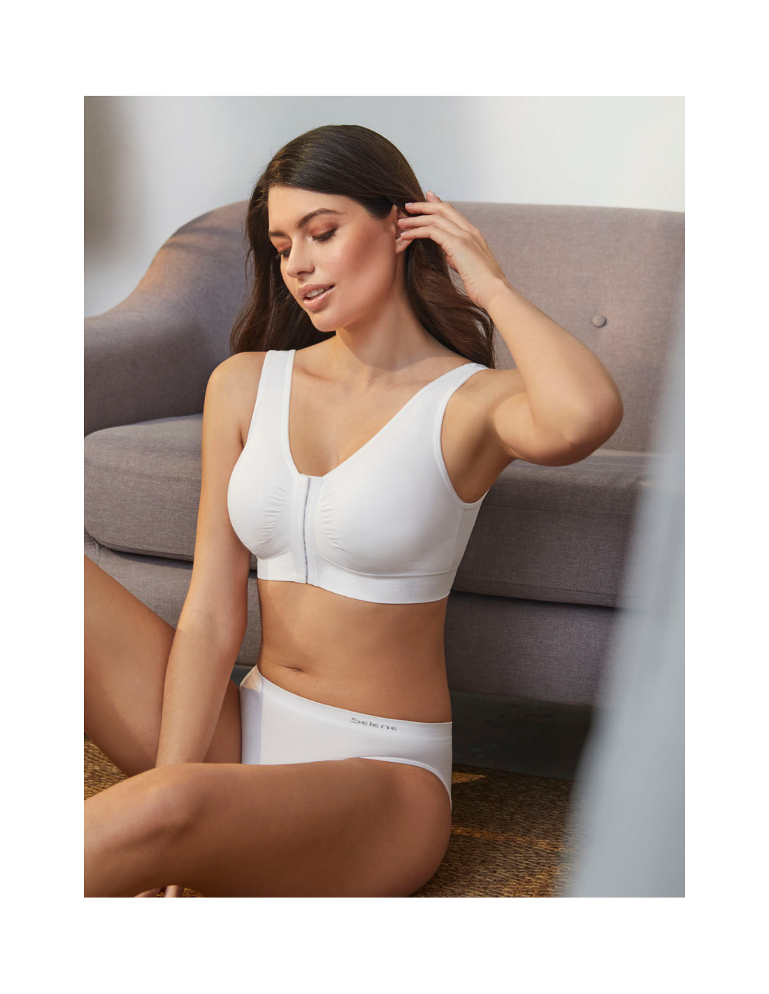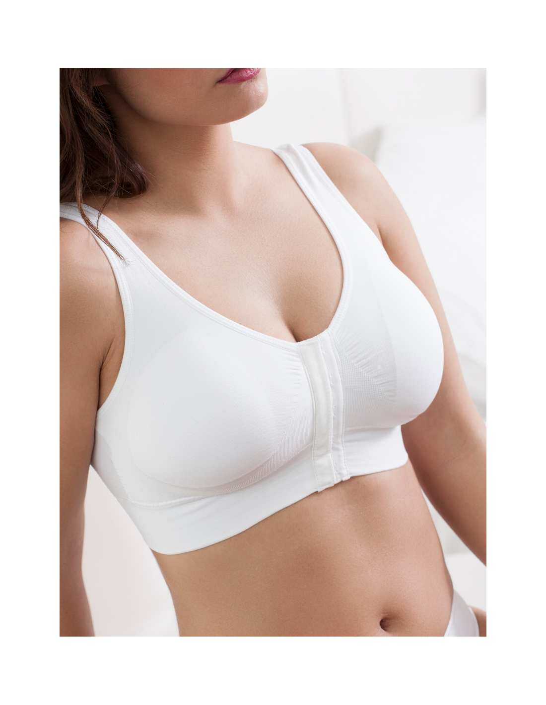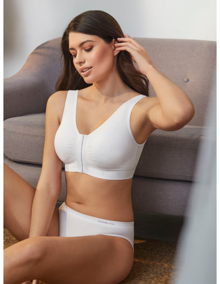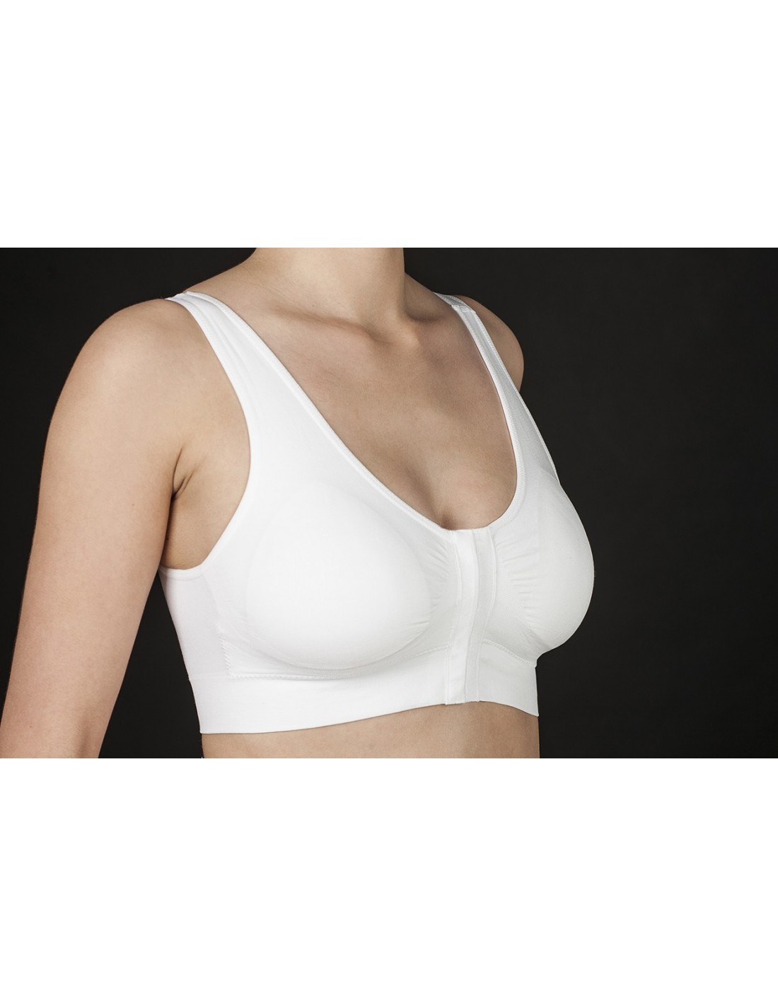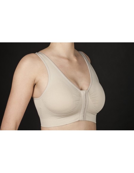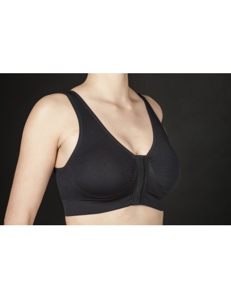 Con apertura delantera y confeccionado con un cómodo tejido que incorpora un suave forro interior para alojar prótesis.