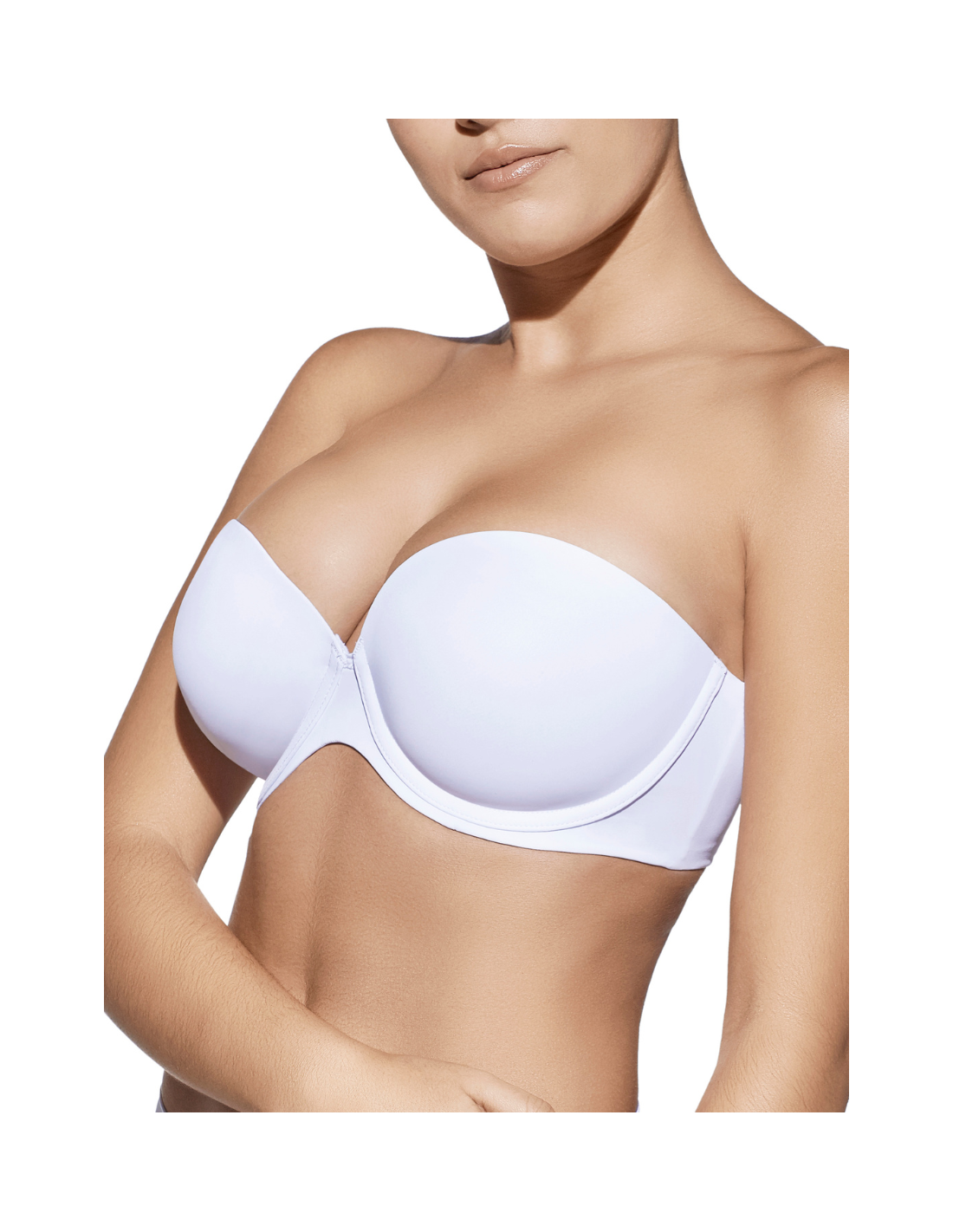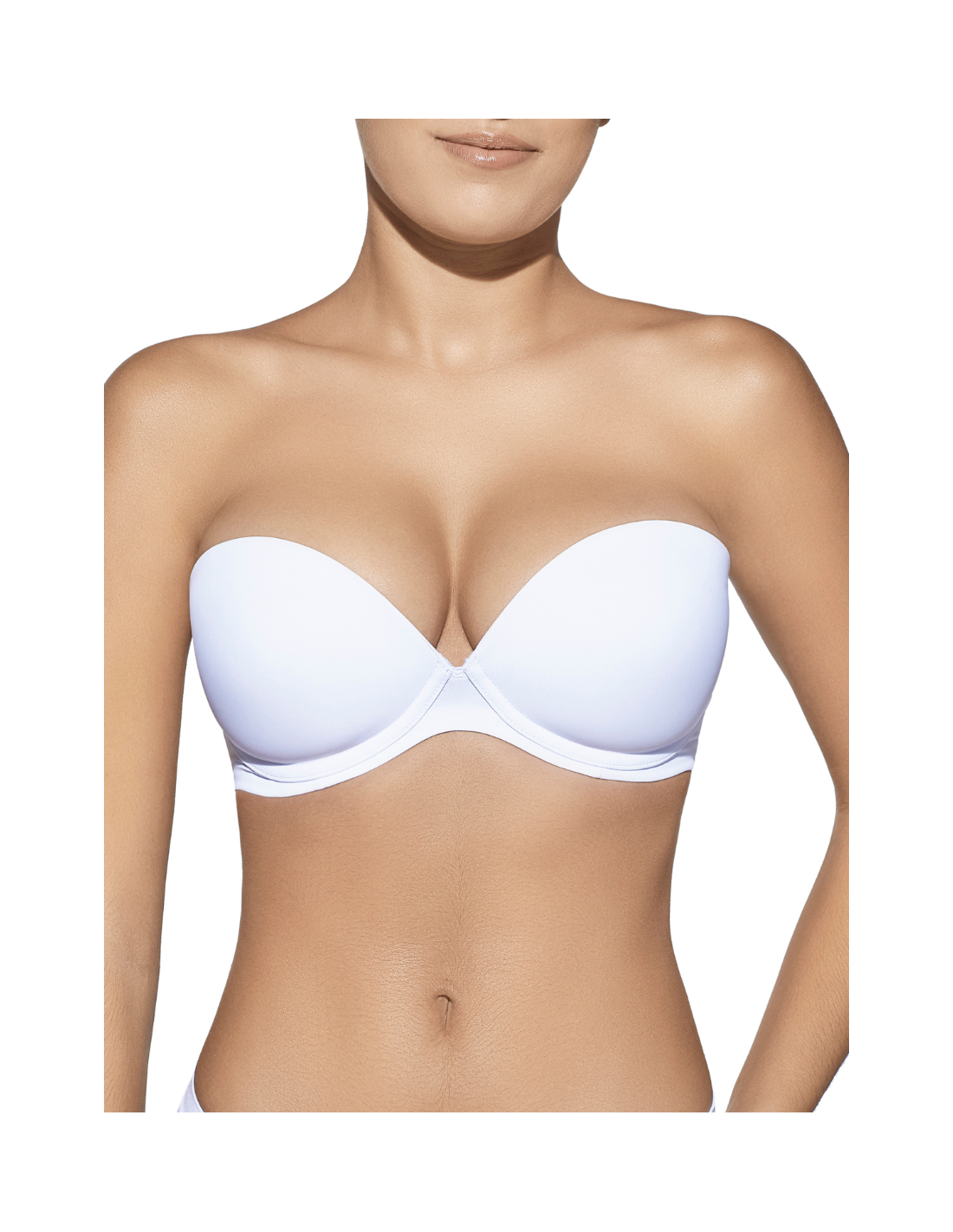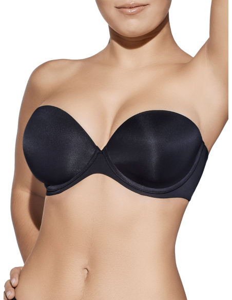Sujetador sin tirantes con aros y copa de relleno.