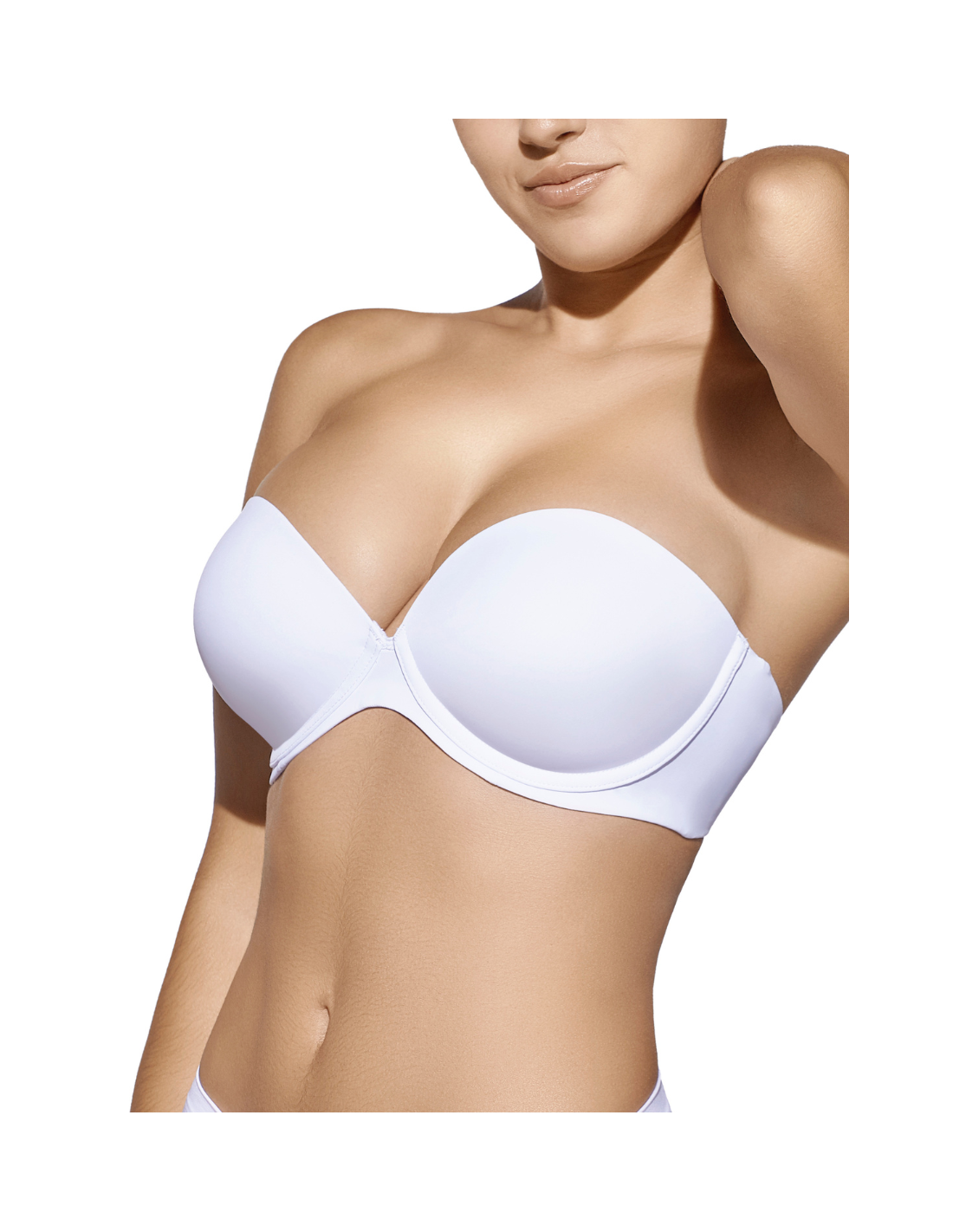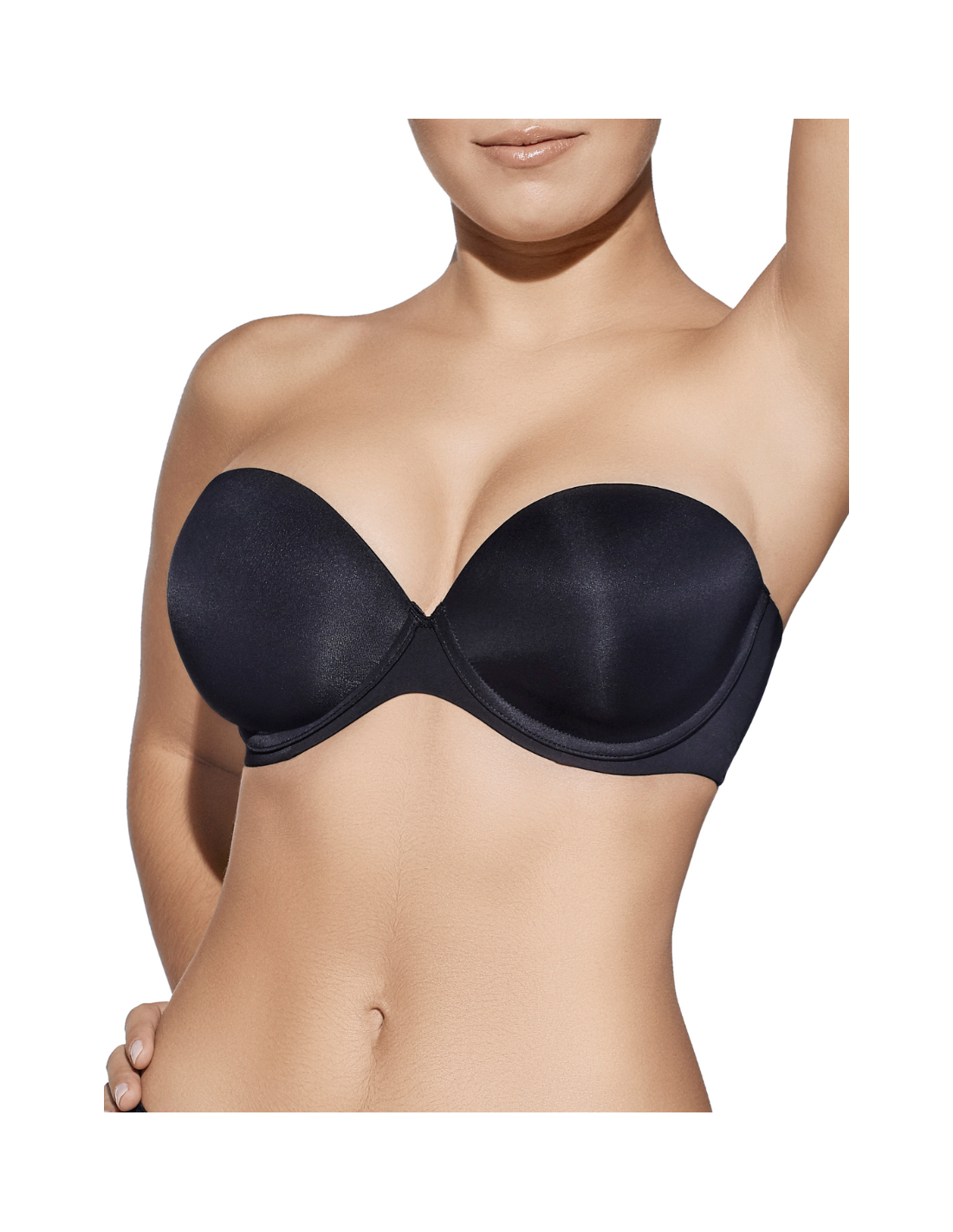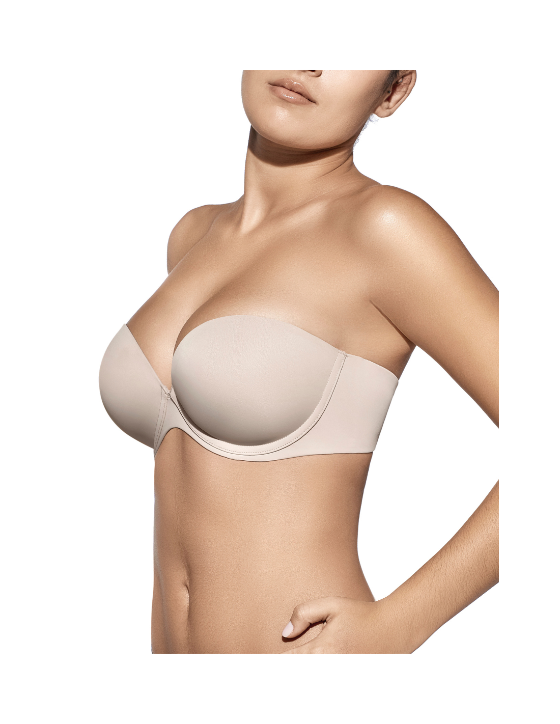 Sujetador sin tirantes con aros y copa de relleno.