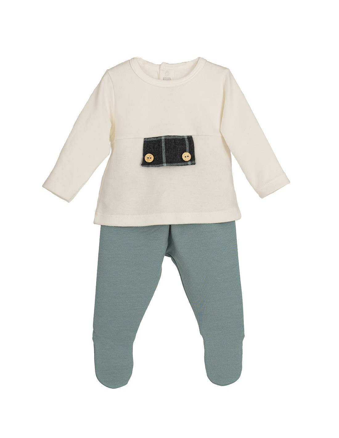 Conjunto de 2 piezas para bebé compuesto por camiseta con detalle de imitación de bolsillo a cuadros y polaina de color mint.