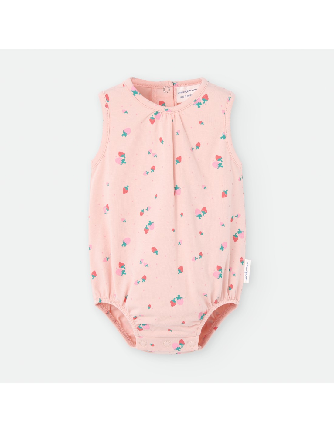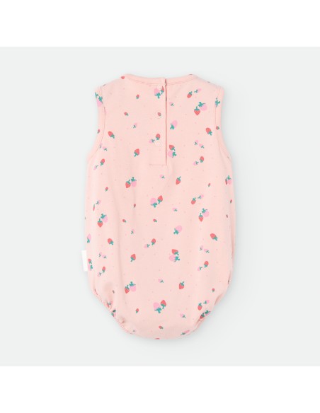 Ranita sin mangas para bebé. Con cierre de click en la parte inferior de la prenda y en la parte trasera.
