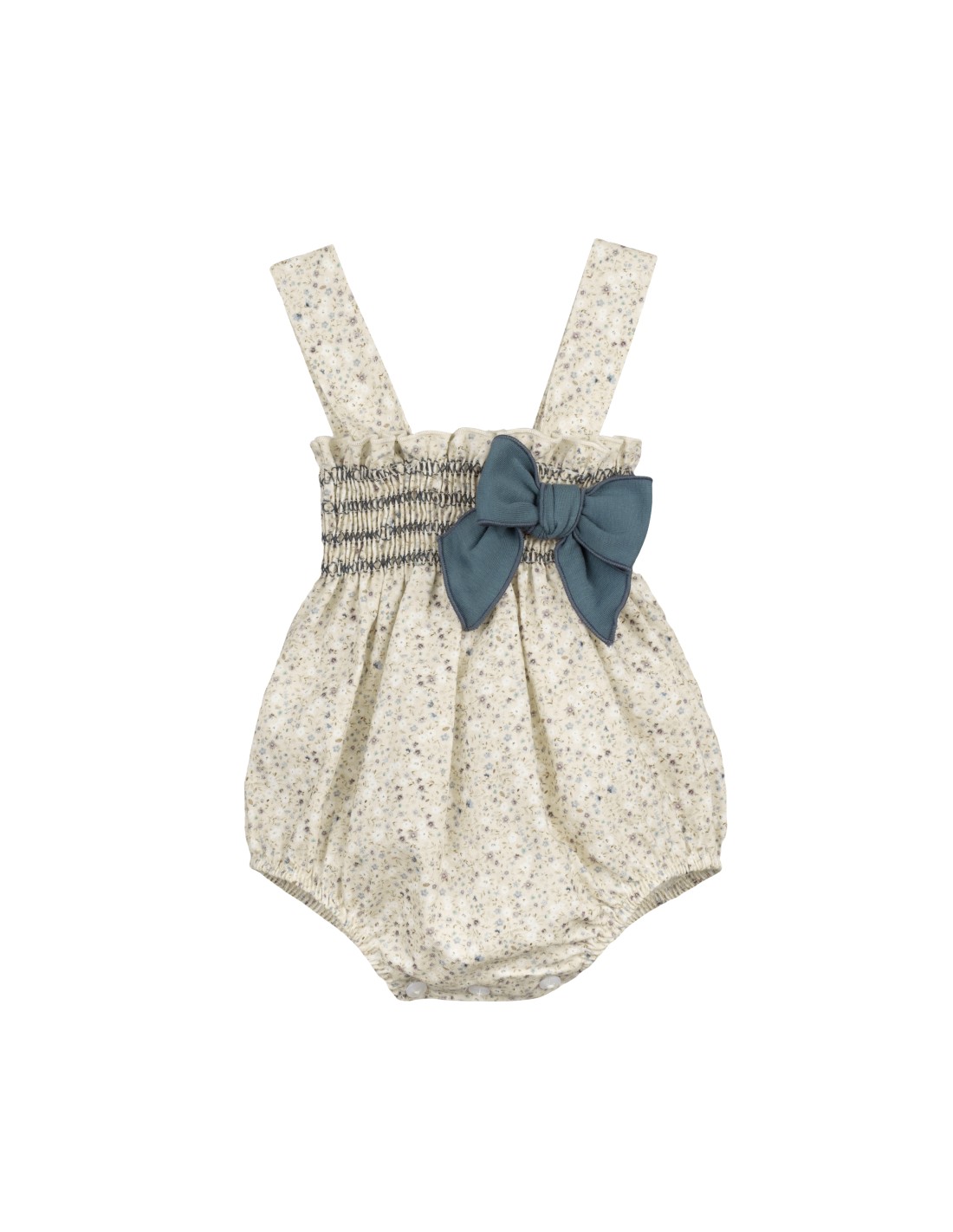 Peto modelo Narcea para bebé. Estampado de flores con lazo de color azul.