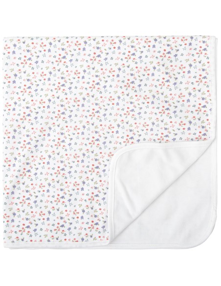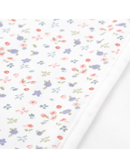 Arrullo de algodón para bebé con fondo blanco estampado de florecillas.