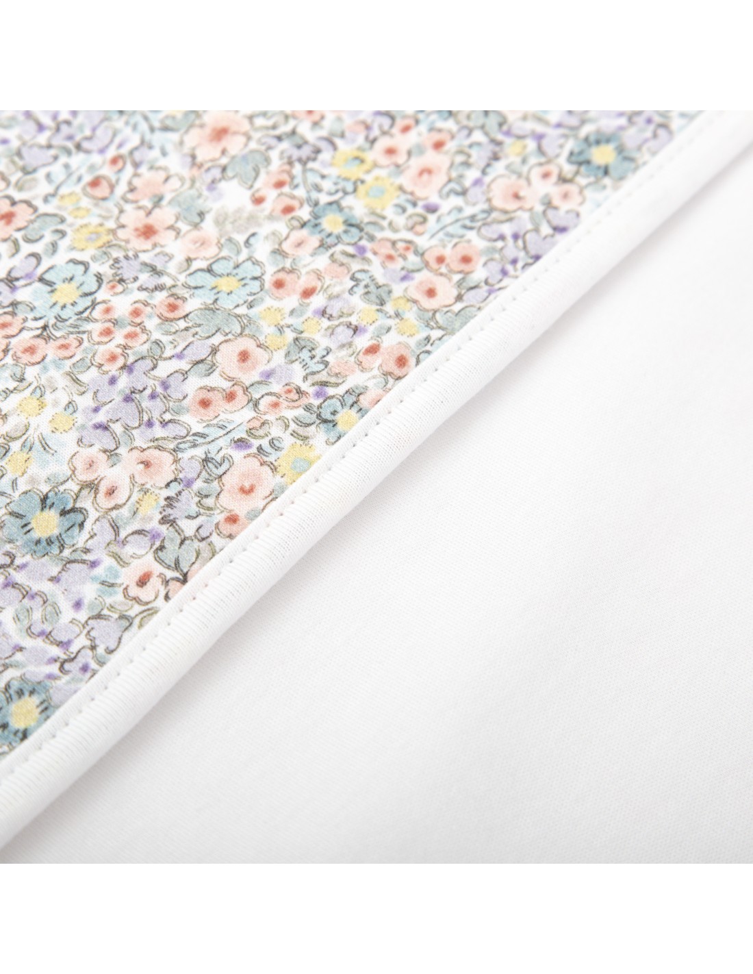 Arrullo de algodón para bebé con fondo blanco estampado de florecillas.