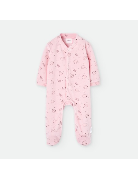 Pelele para bebé de la marca Waterlemon. De color rosa con estampado de corazones.