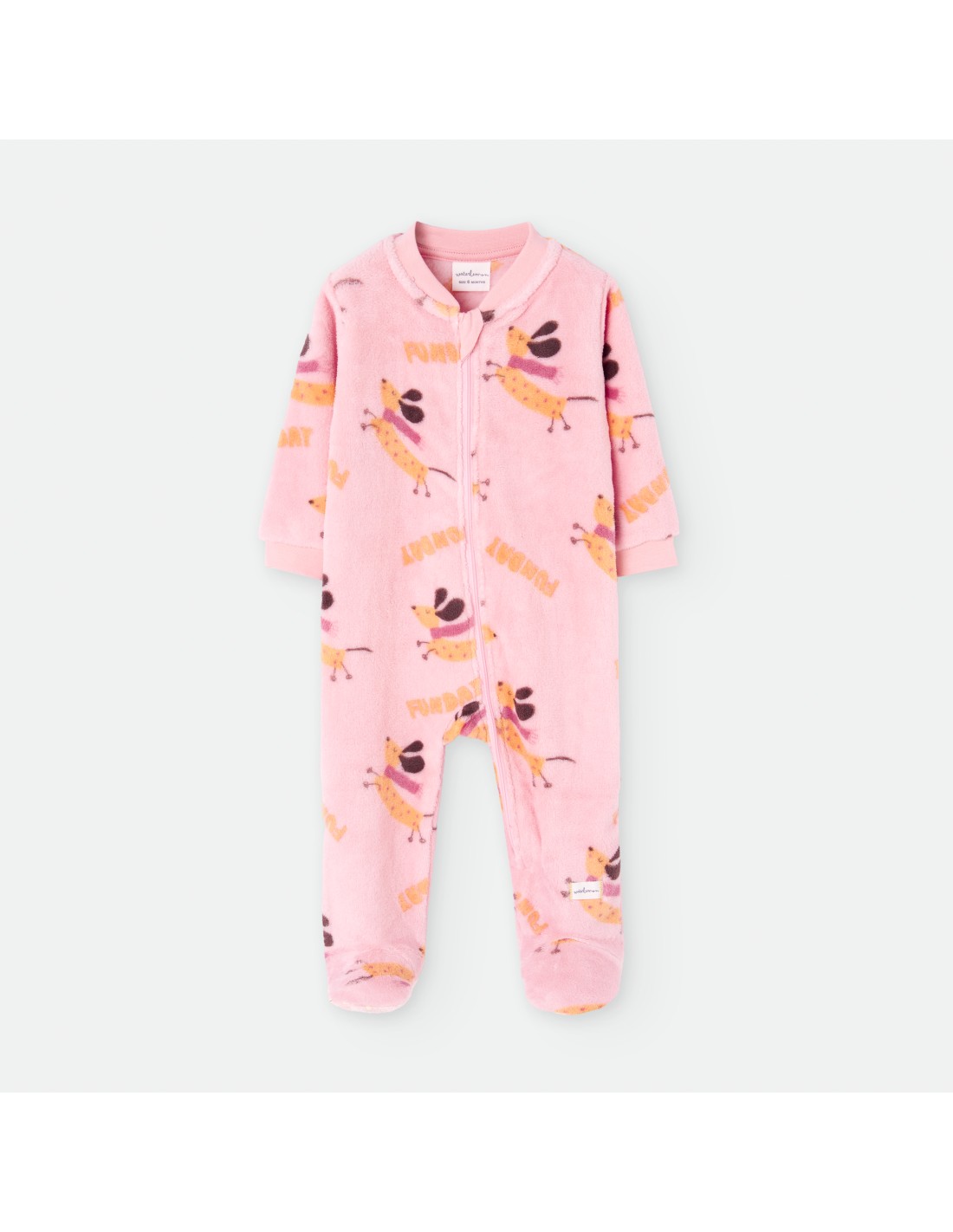 Pelele dormilón para bebé de la marca Waterlemon. De color rosa con estampado de perritos.