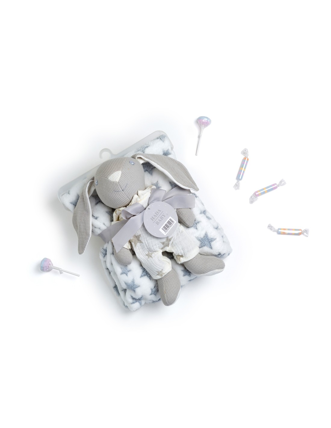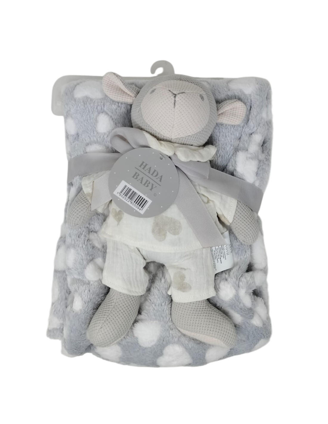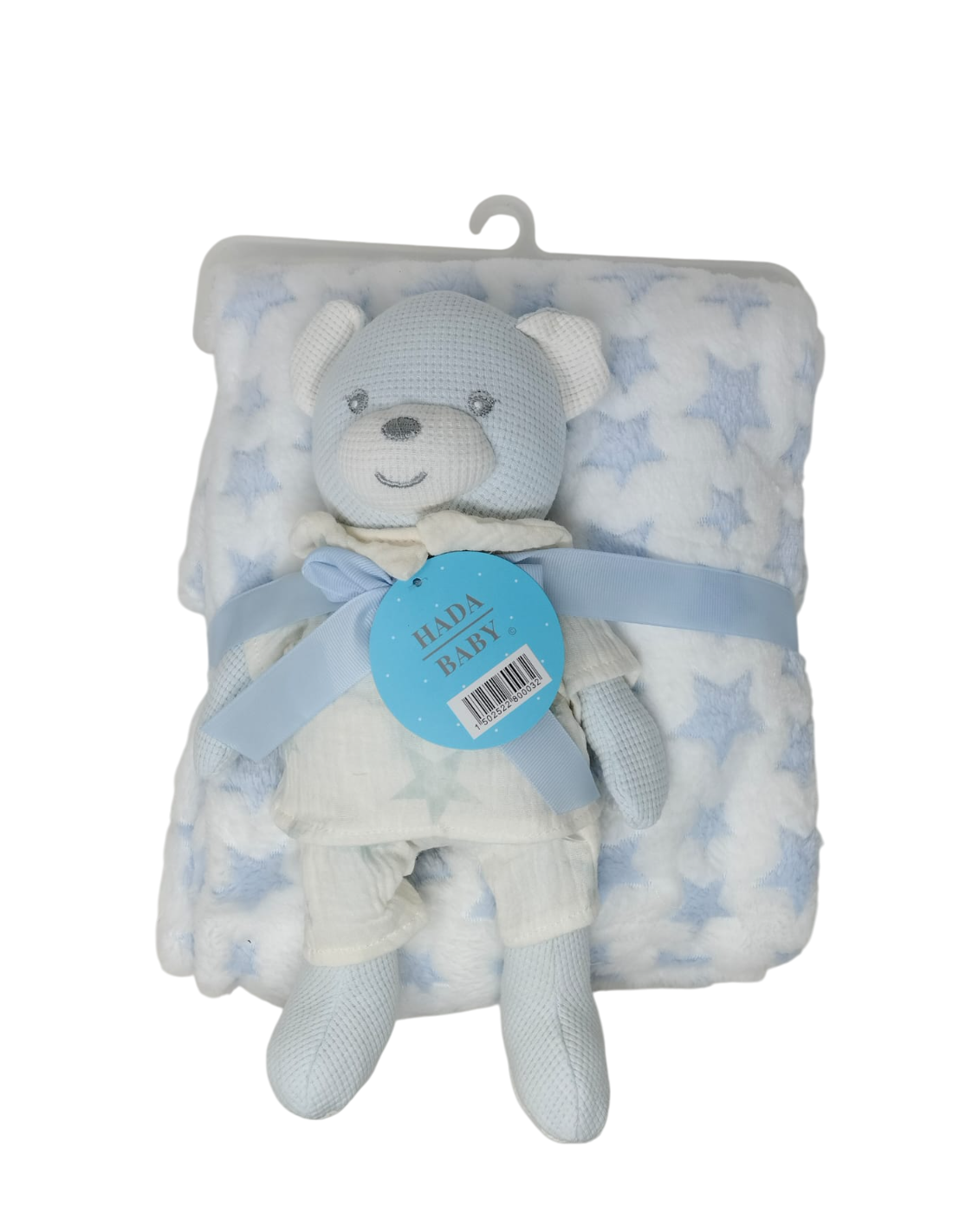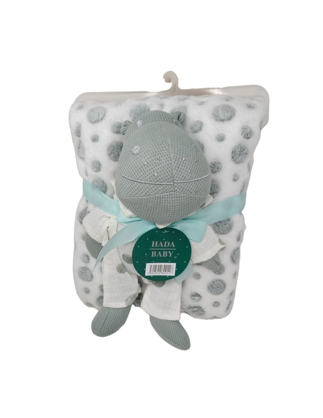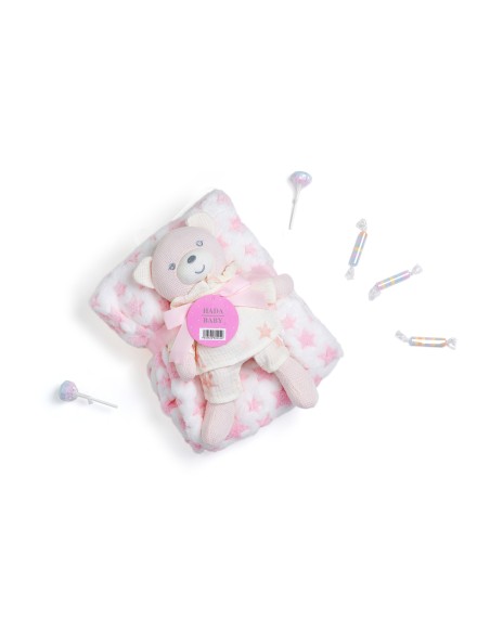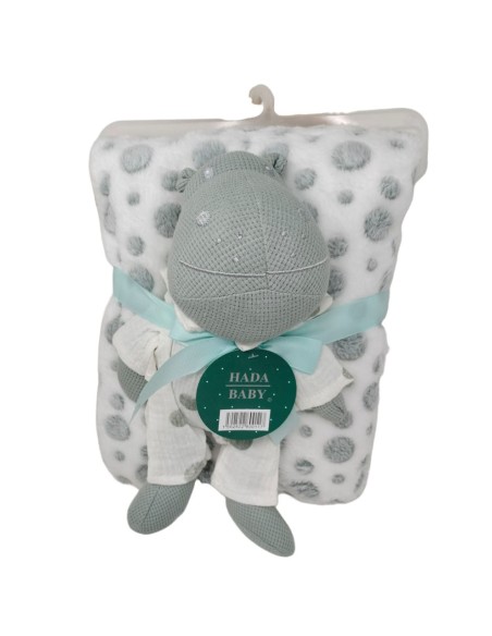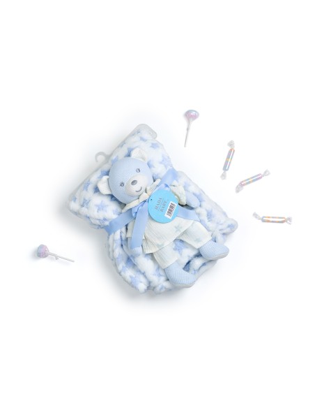 Caja surtida de 10 peluches de crochet con ropita para bordar y manta para bebé.