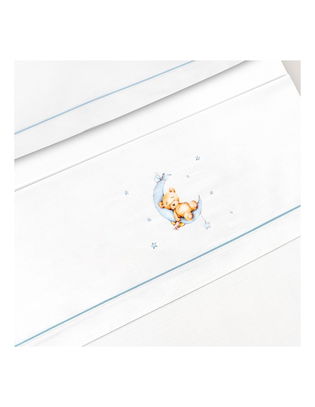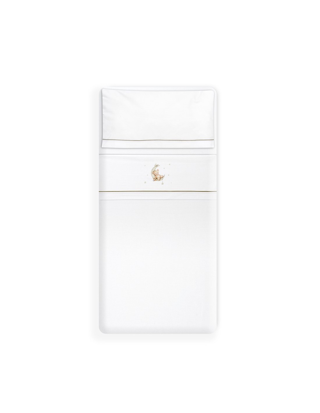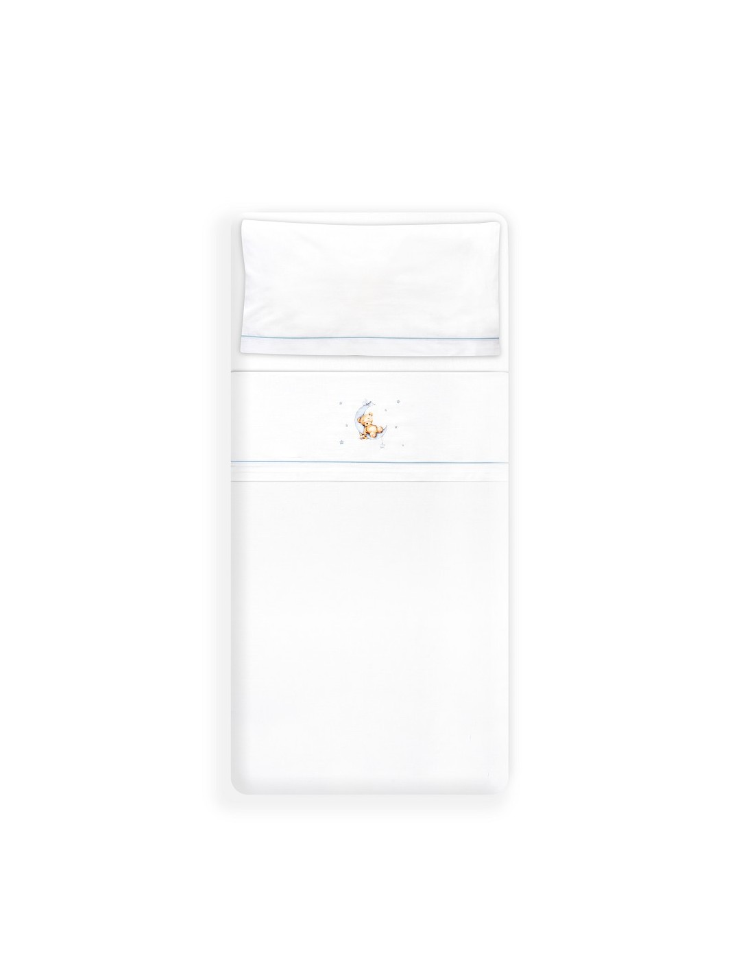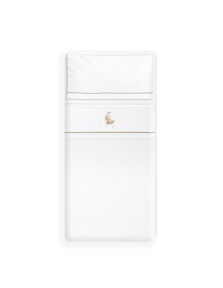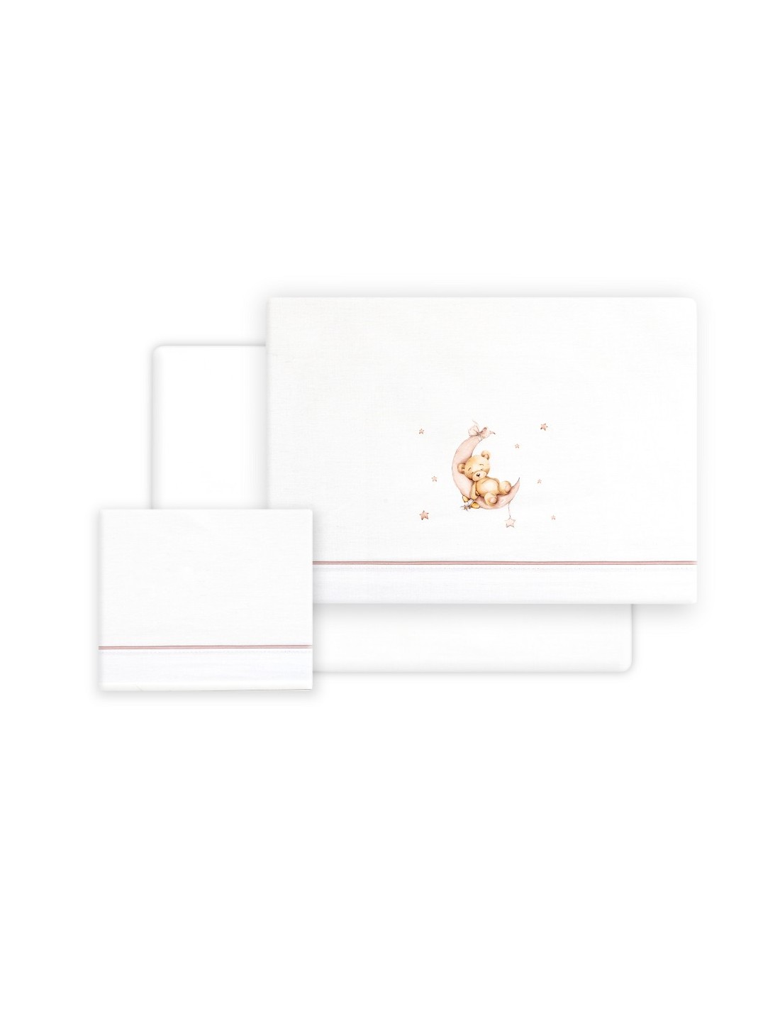 Juego de sábanas de algodón para cuna de bebé compuesto por: sábana bajera, sábana encimera y funda de almohada.