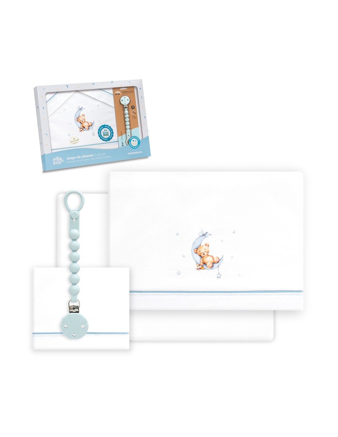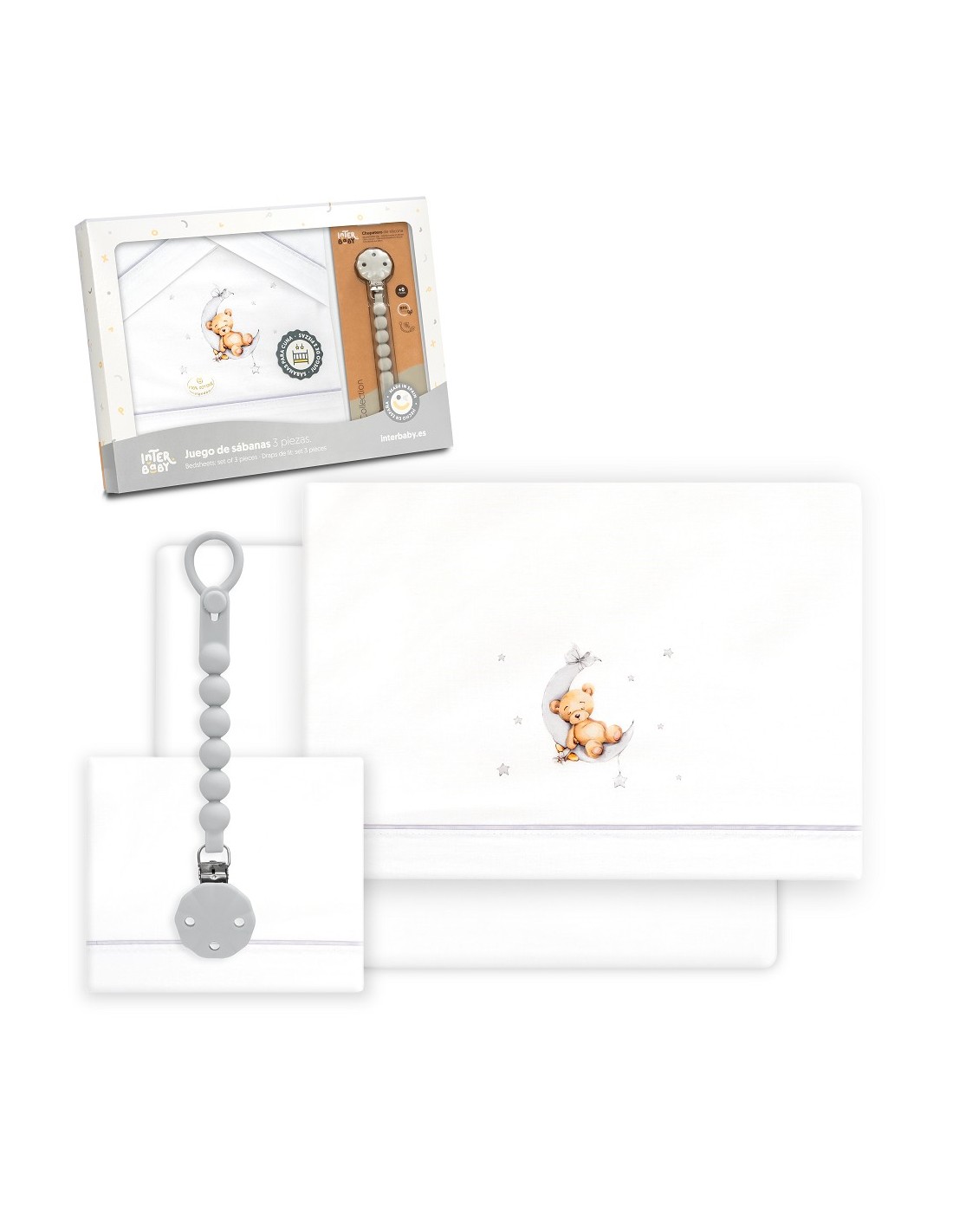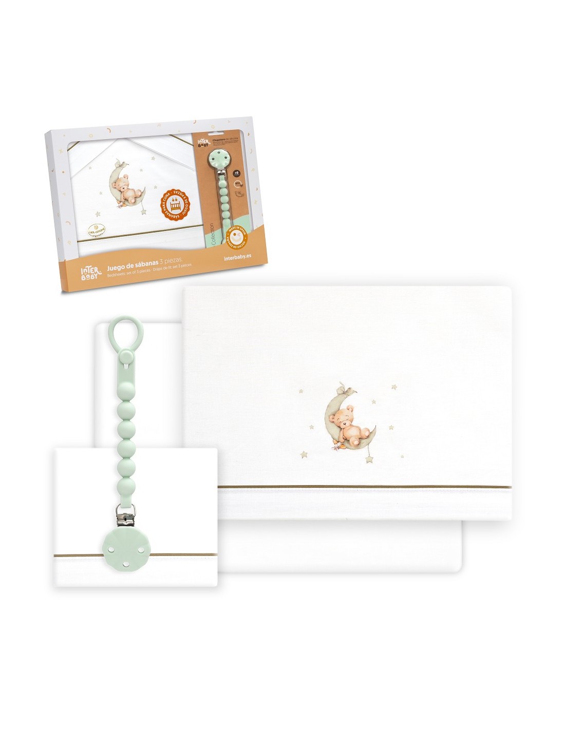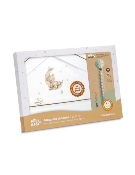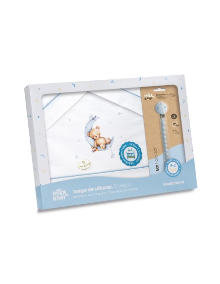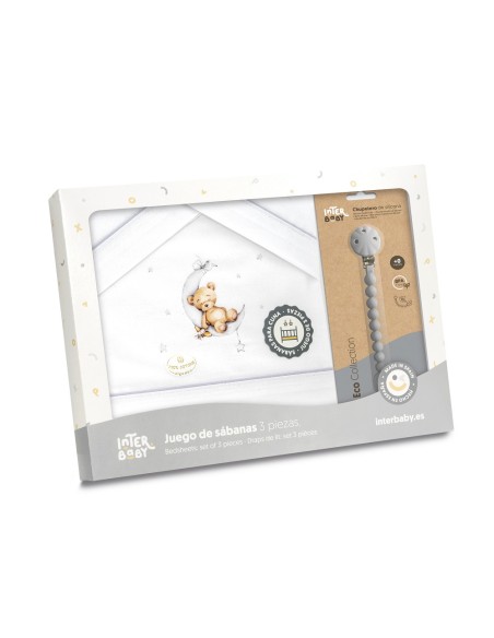 Juego de sábanas para cuna con chupetero marca Interbaby osito
