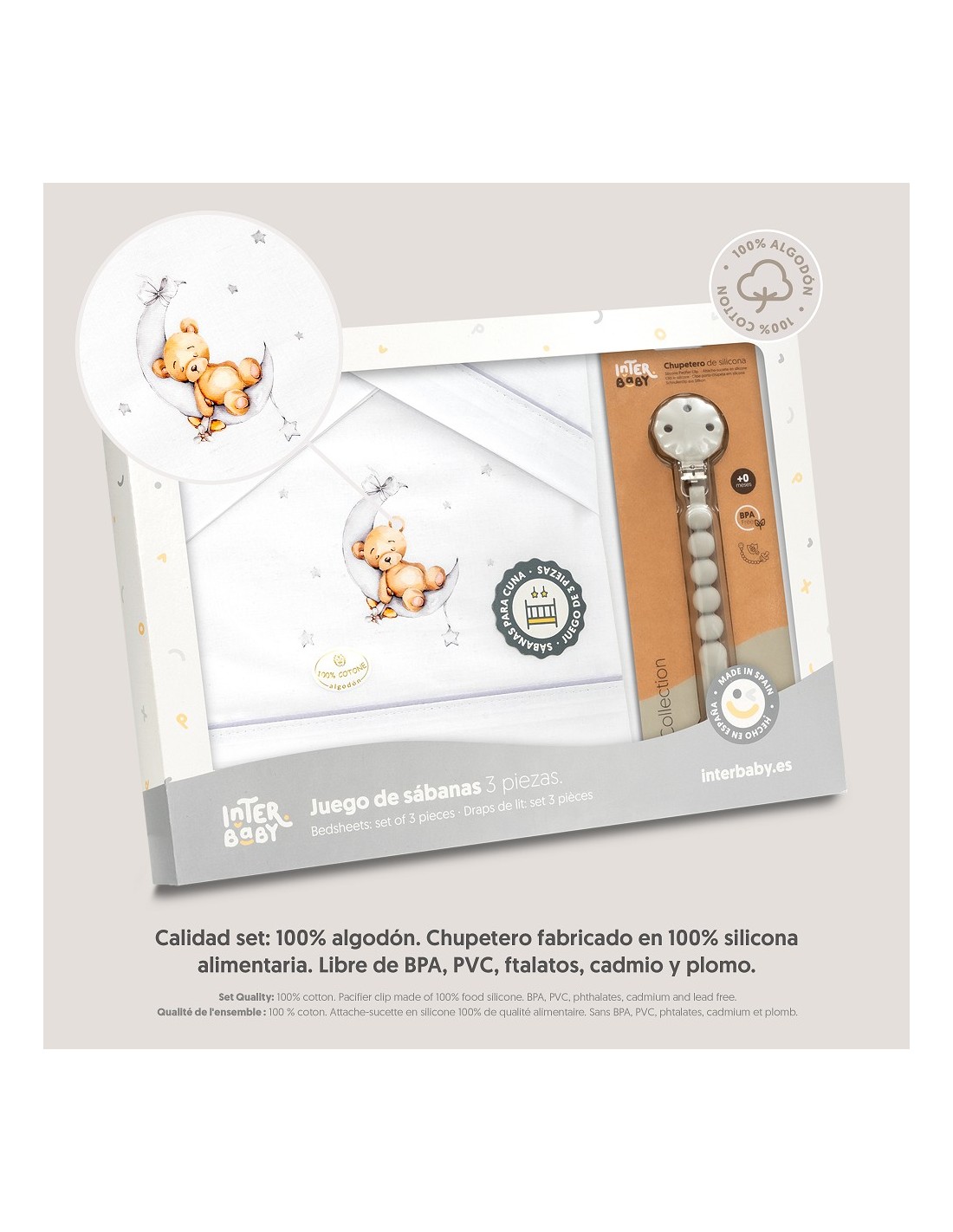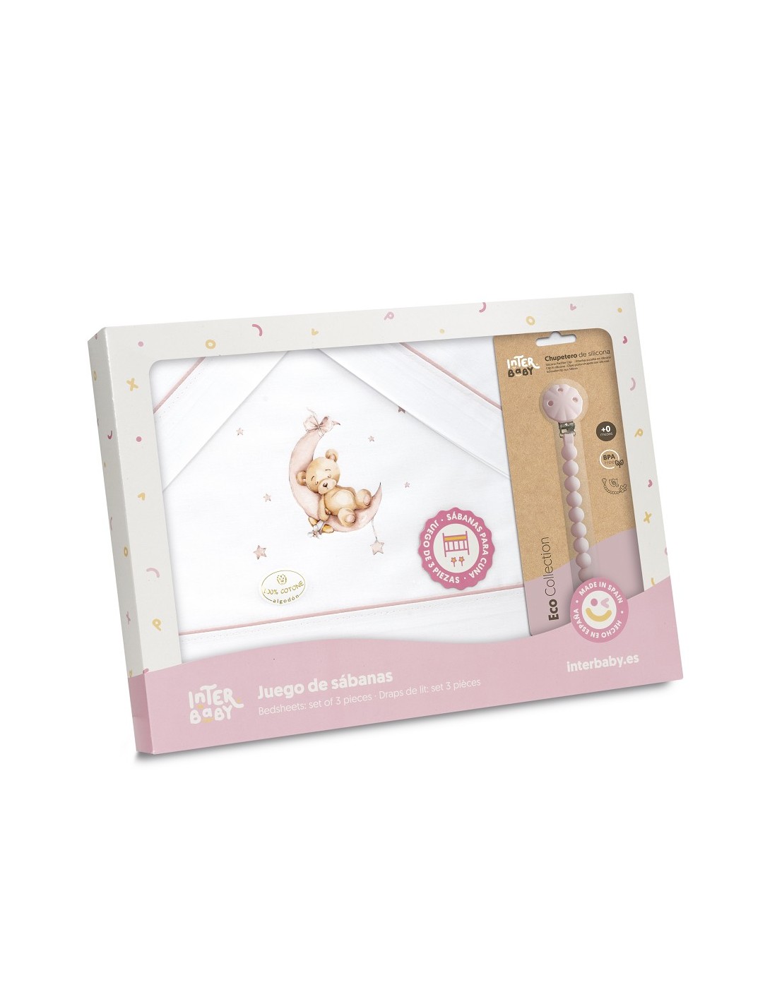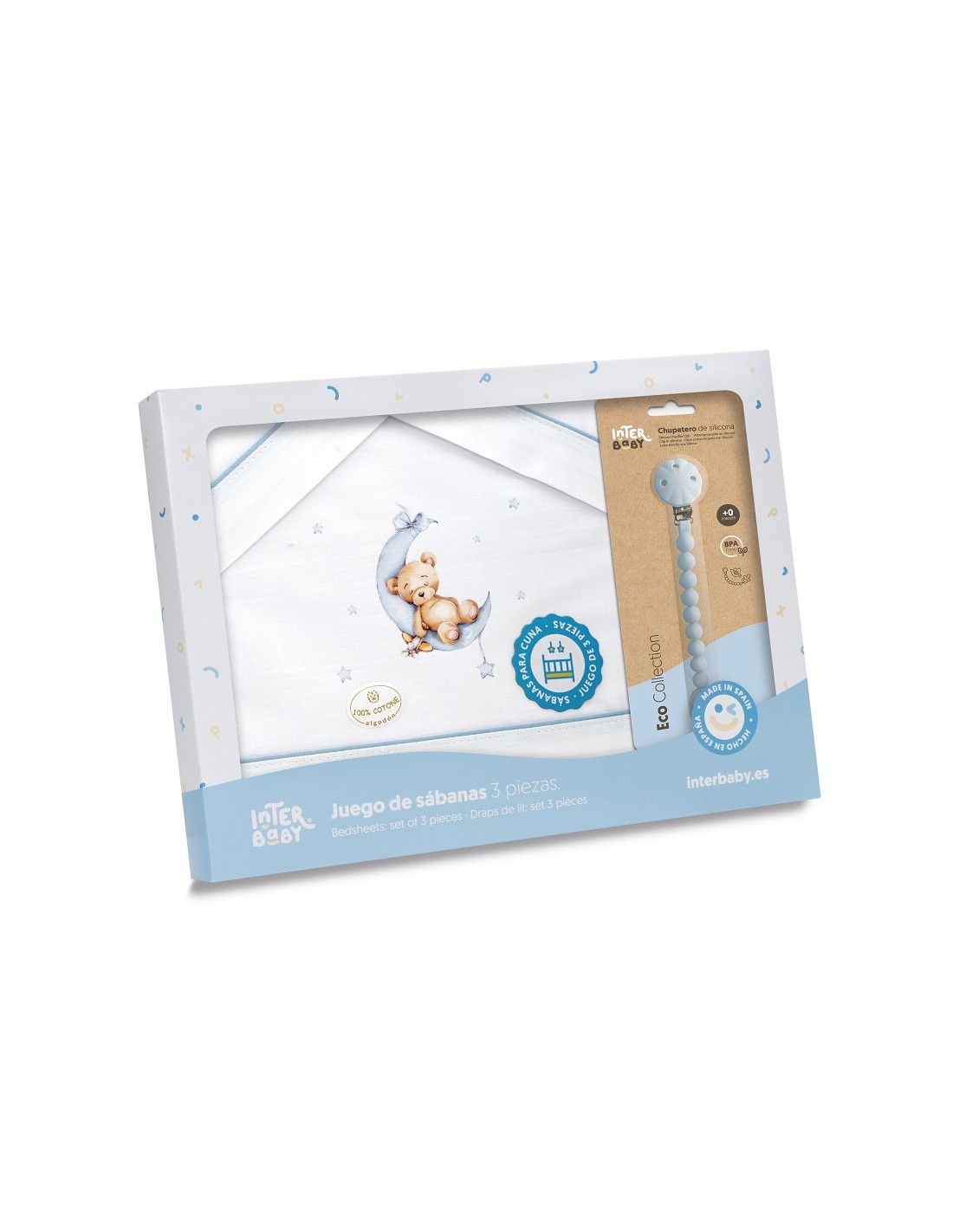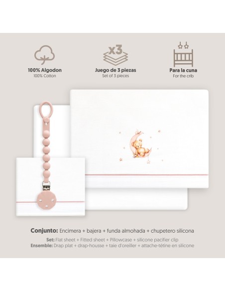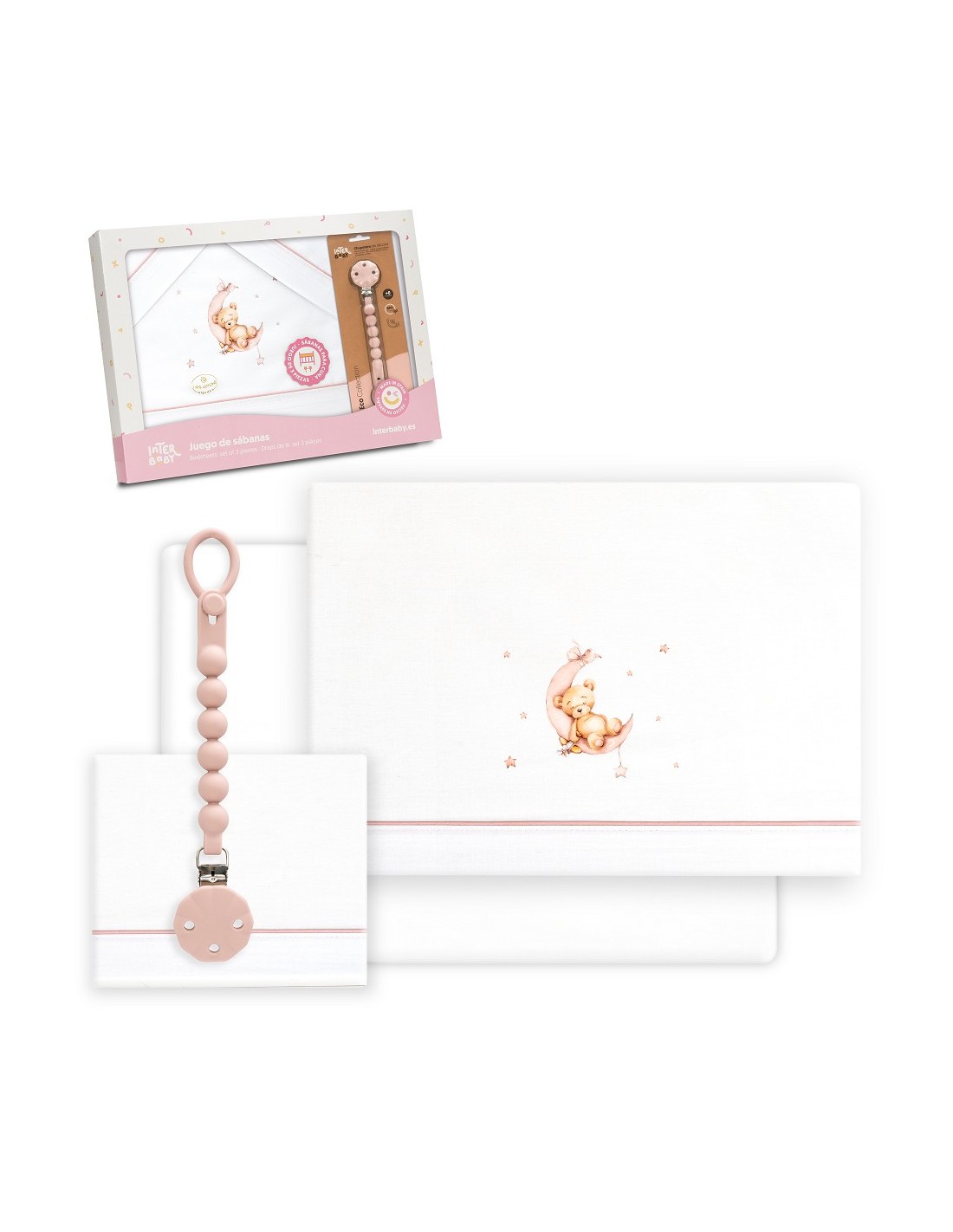 Juego de sábanas para cuna con chupetero marca Interbaby osito
