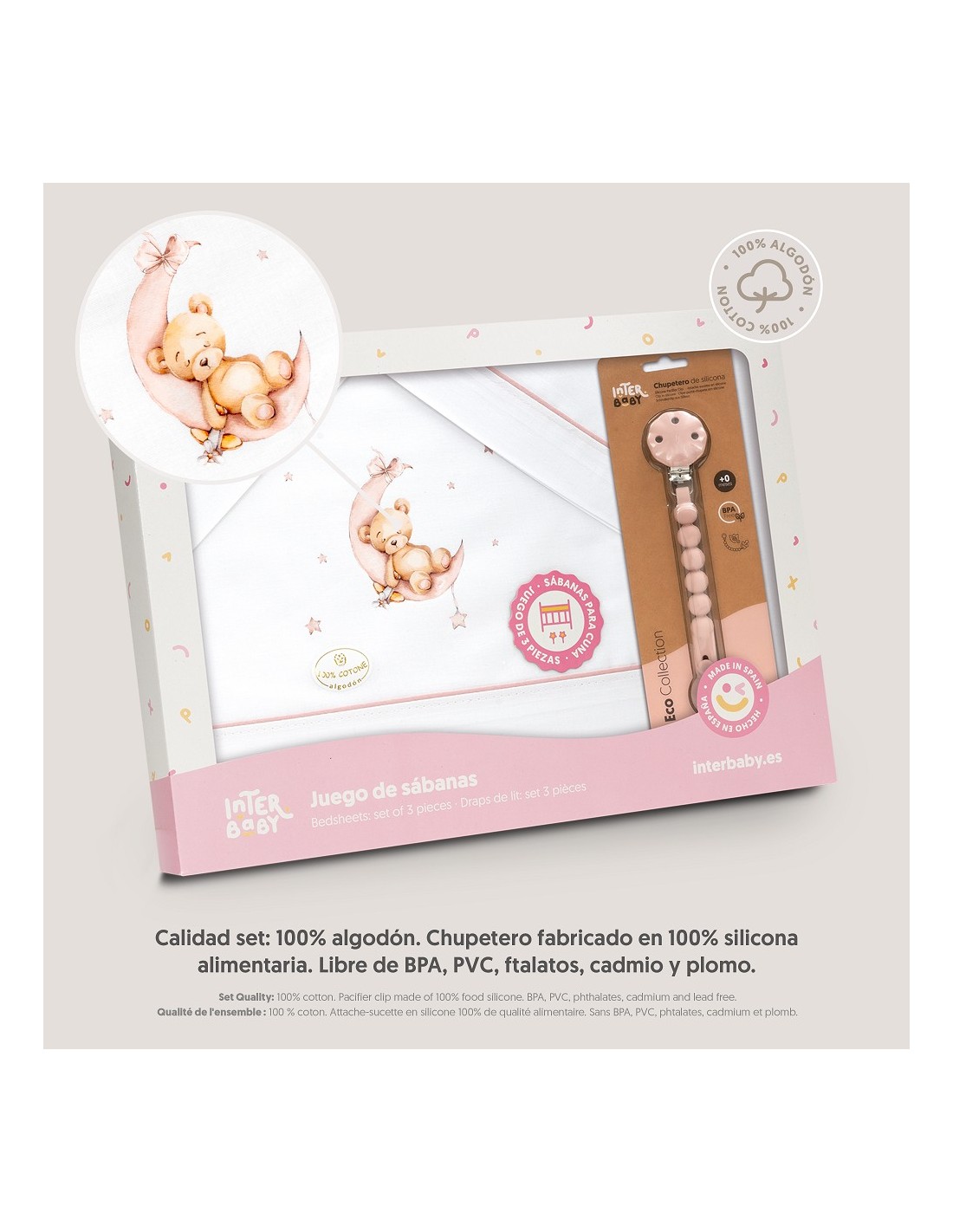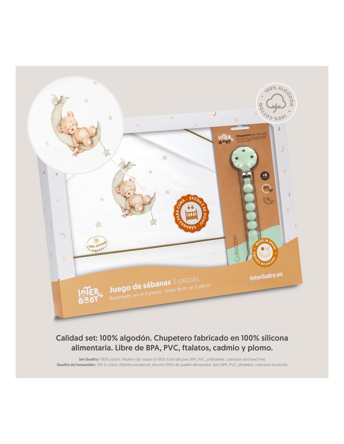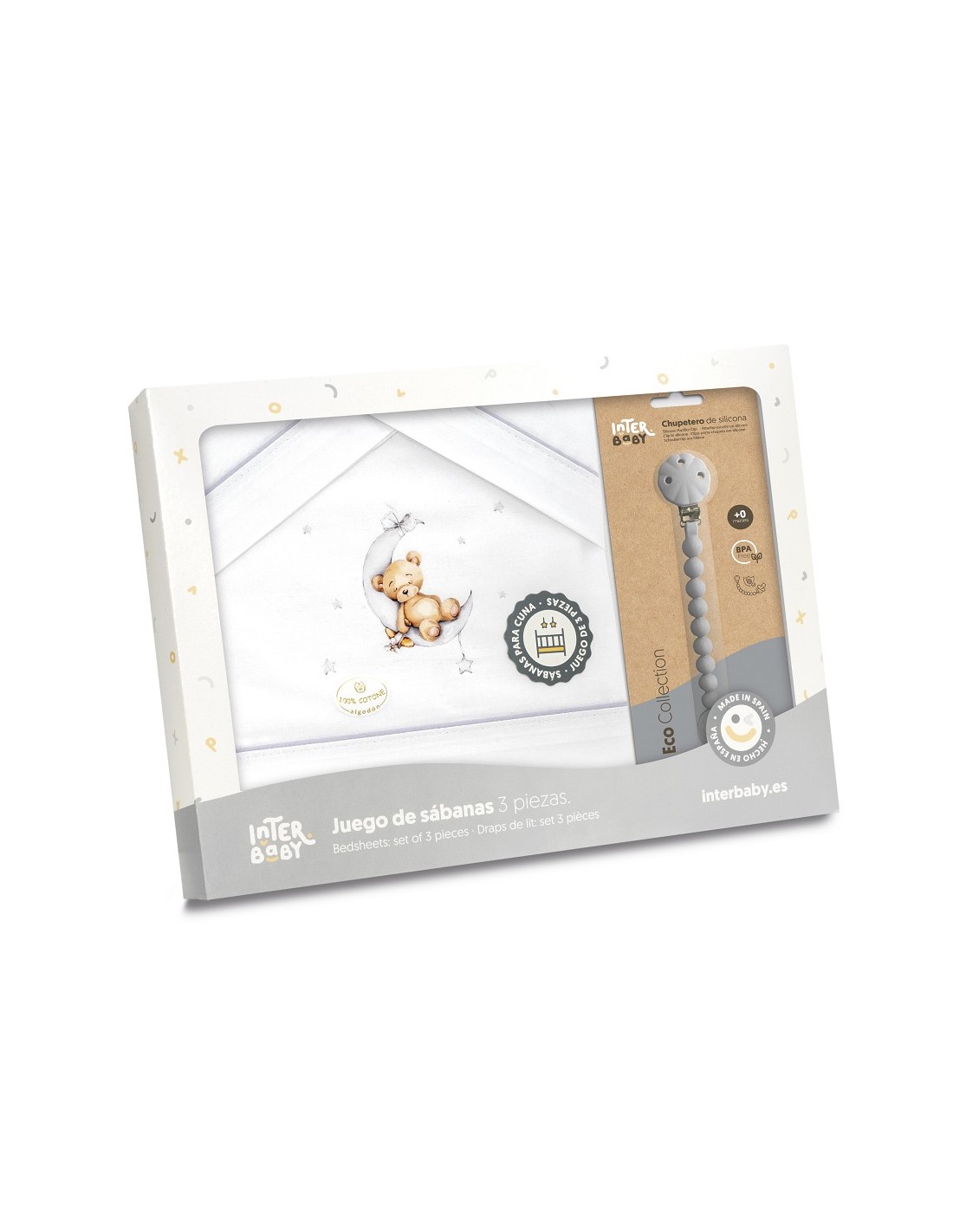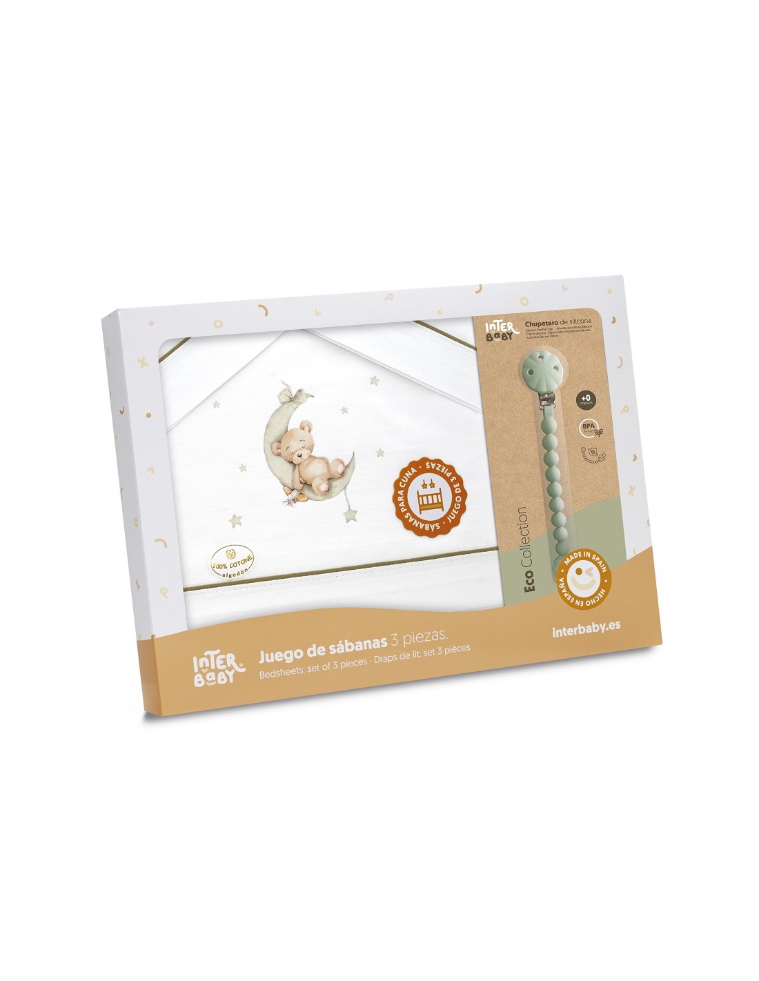 Juego de sábanas para cuna con chupetero marca Interbaby osito