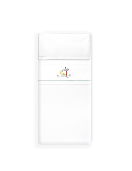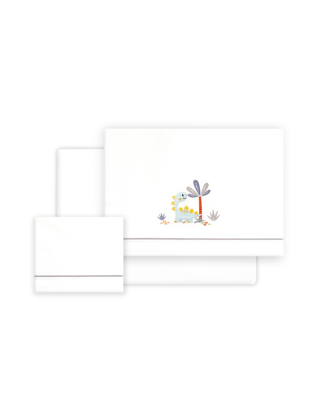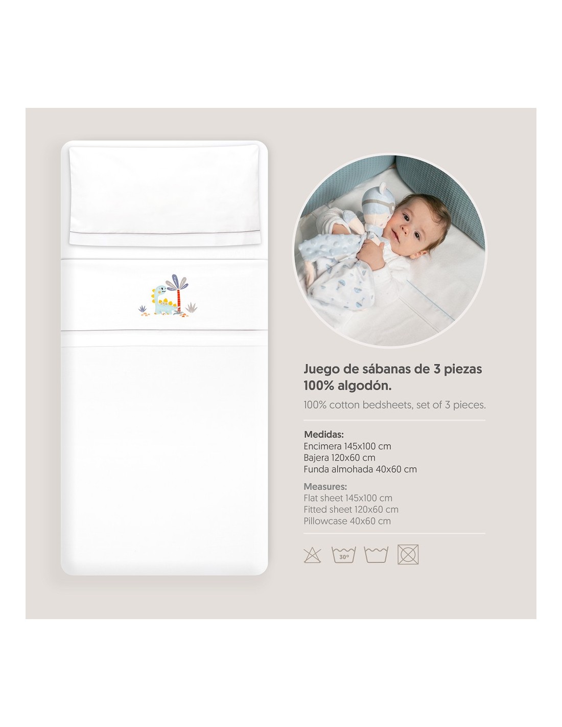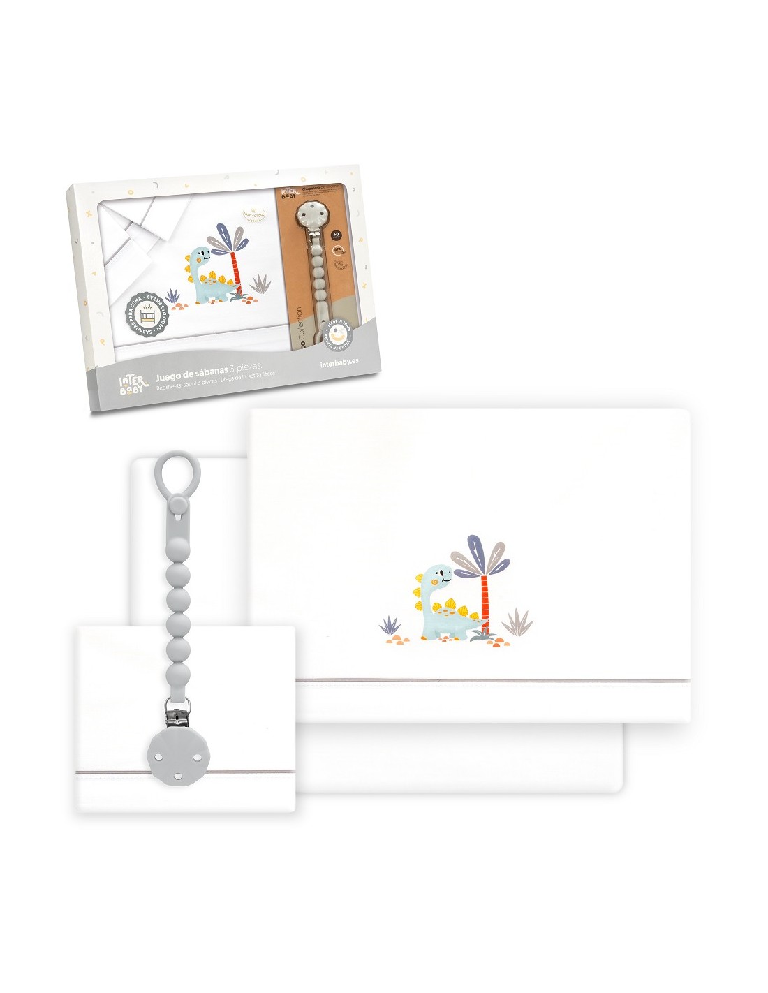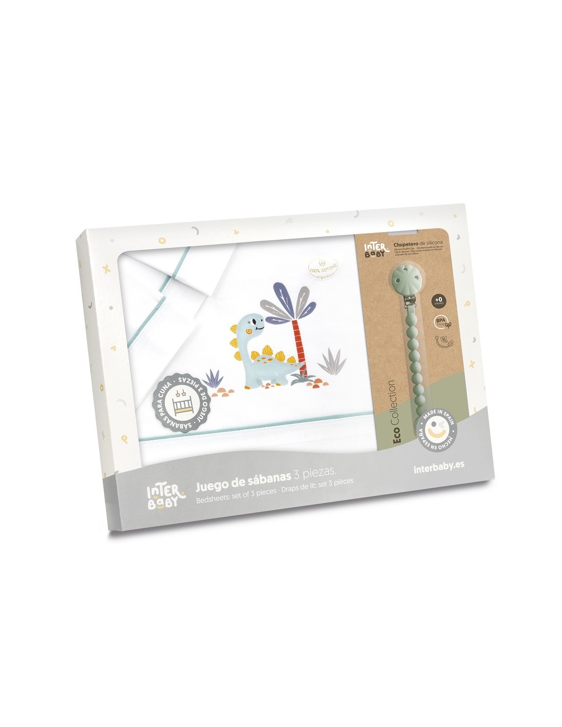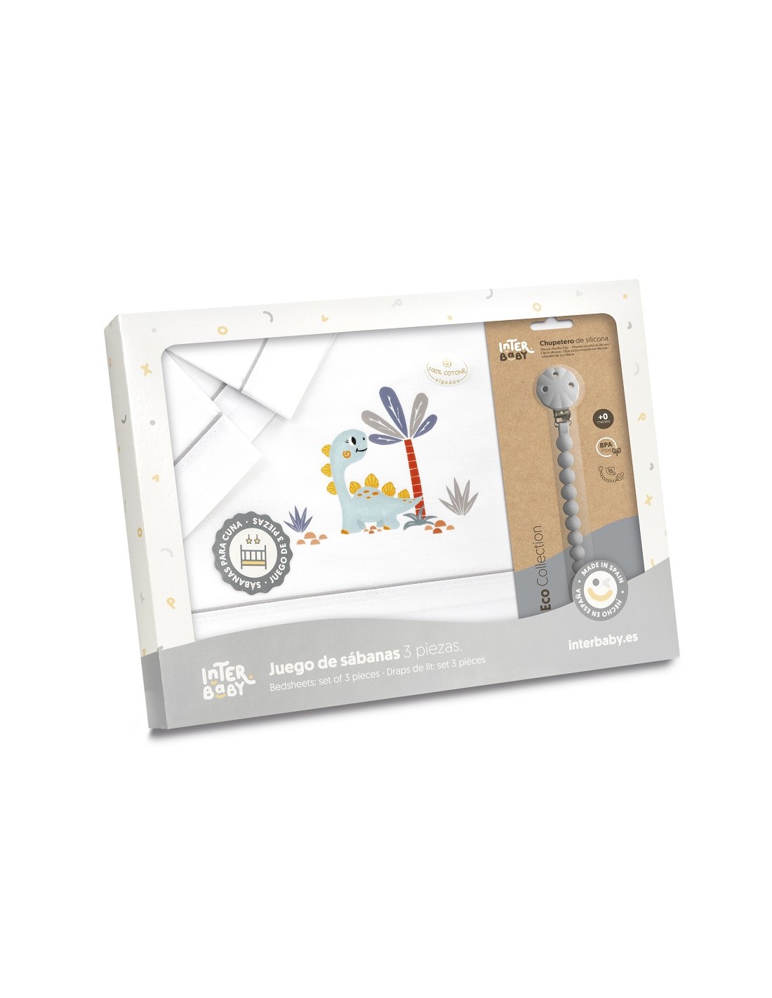 Juego de sábanas para cuna con chupetero marca Interbaby dinosaurio