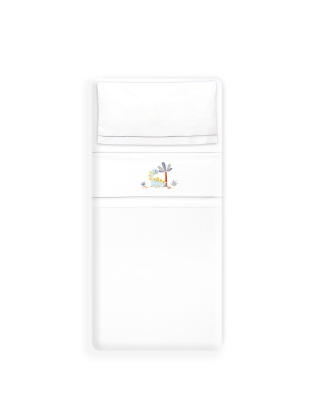 Juego de sábanas de algodón para cuna de bebé compuesto por: sábana bajera, sábana encimera y funda de almohada.