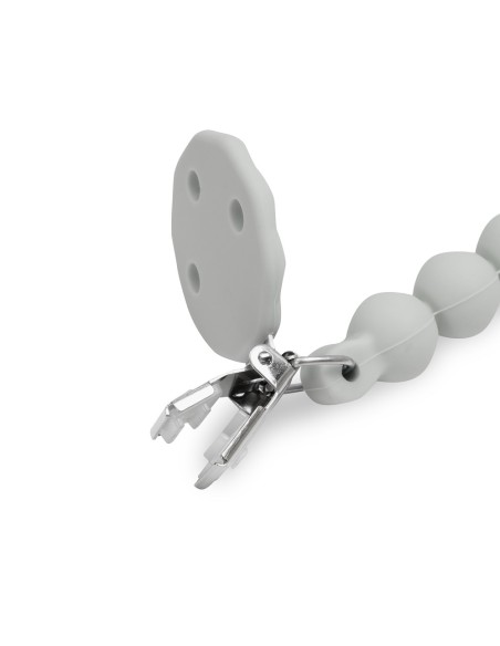 Con chupetero de silicona alimentaria. Libre de BPA, PVC, ftalatos, cadmio y plomo.