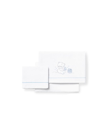 Sábanas de cuna Juego de sábanas de 3 piezas para cuna marca Hada Baby osito bebé HADA BABY HAD3321 Set de 3 piezas de sábanas para cuna de bebé. Disponible en varios colores. Composición: 100% algodón. View