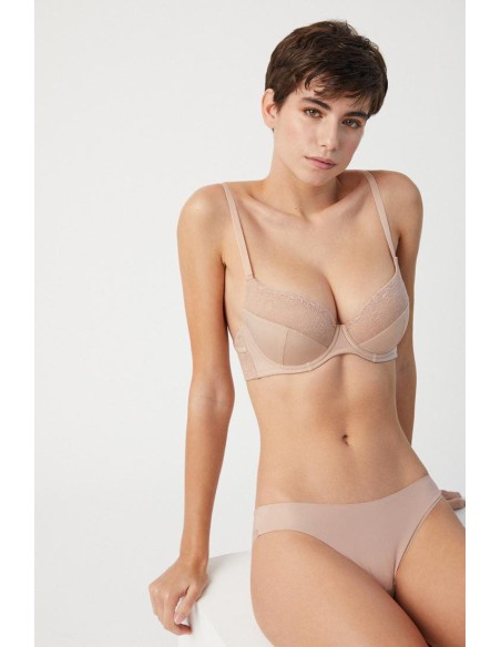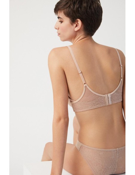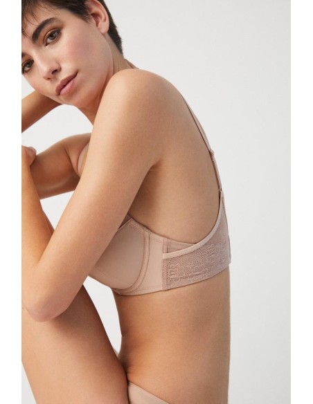 Sujetador con cierre hasta 4 posiciones para mayor sujeción e interior forrado en microfibra. La base de las copas incorpora segmentos en espuma para un mayor confort. Su diseño espalda anatómica junto con los tirantes anchos contribuyen a una mayor sujeción y comodidad. Lo detalles en encaje se prolongan a toda la espalda. Elige una braguita de la colección Special You y completa tu set lencero.