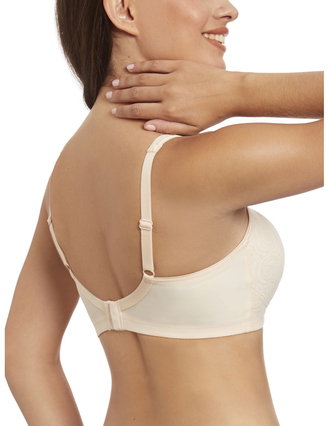 Sujetador sin aros y sin relleno. Fabricado con un elegante tejido estampado y un sutil escote en forma de V.