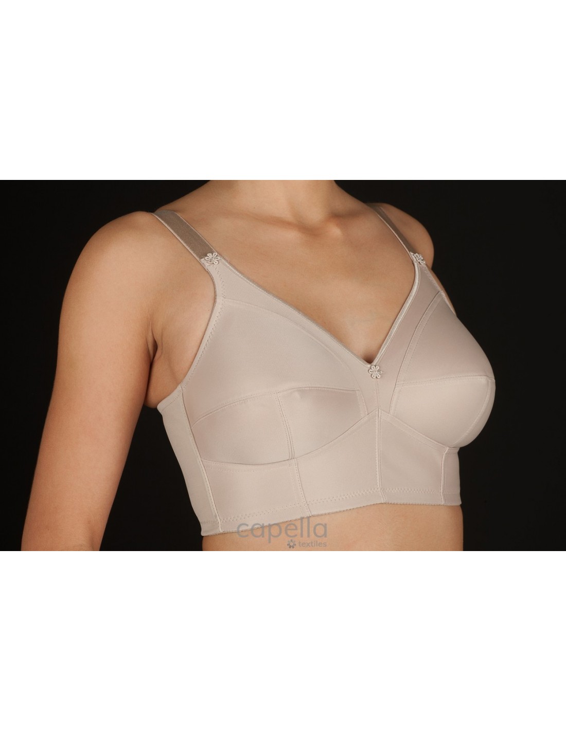 Sujetador clásico de medio cuerpo fabricado en tejido simplex para mayor sujeción.