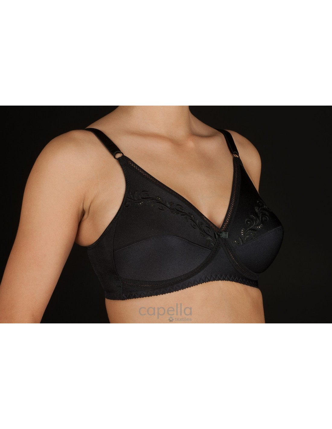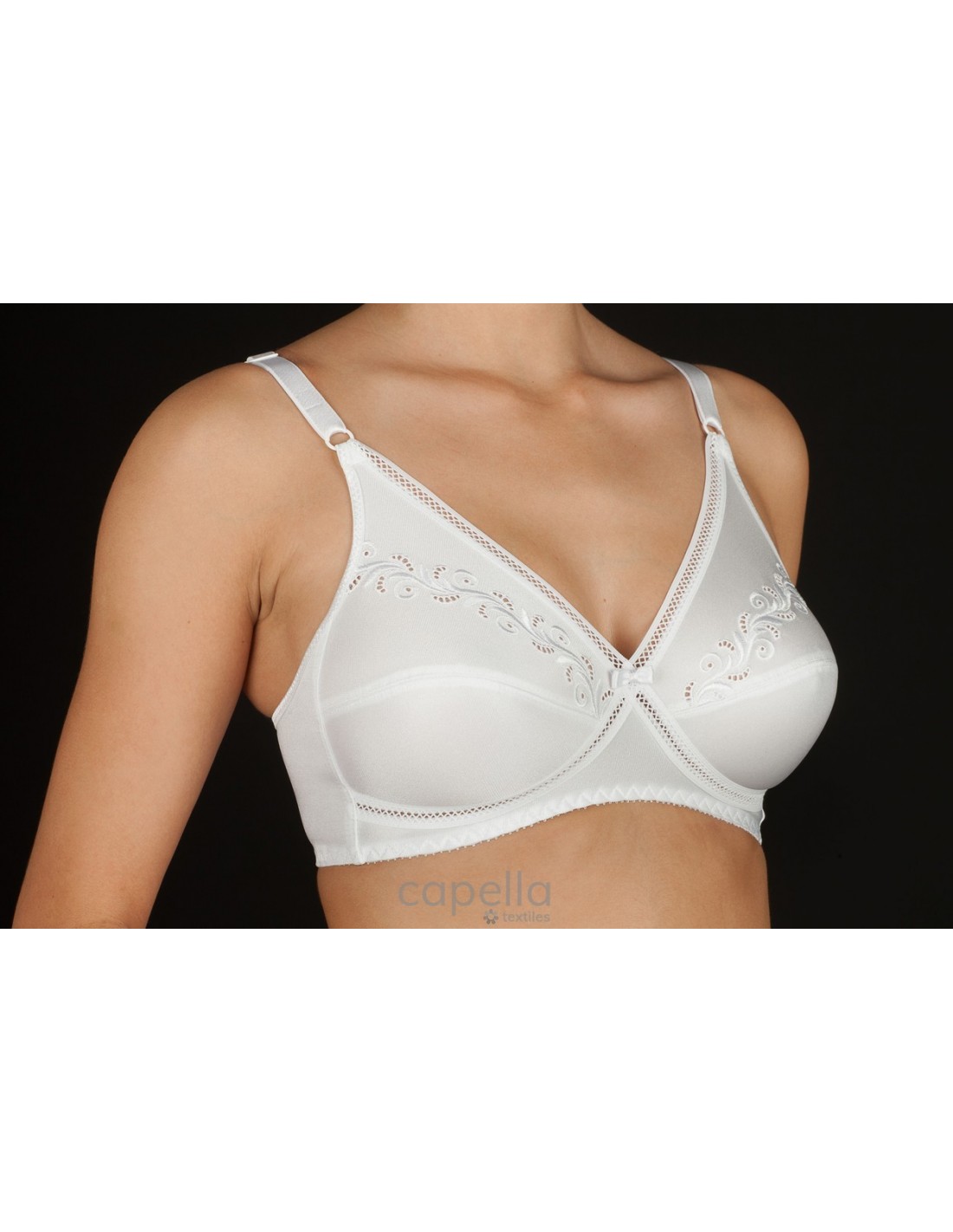 Sujetador clásico sin aros, cruzado y fabricado en tejido simplex bordado.