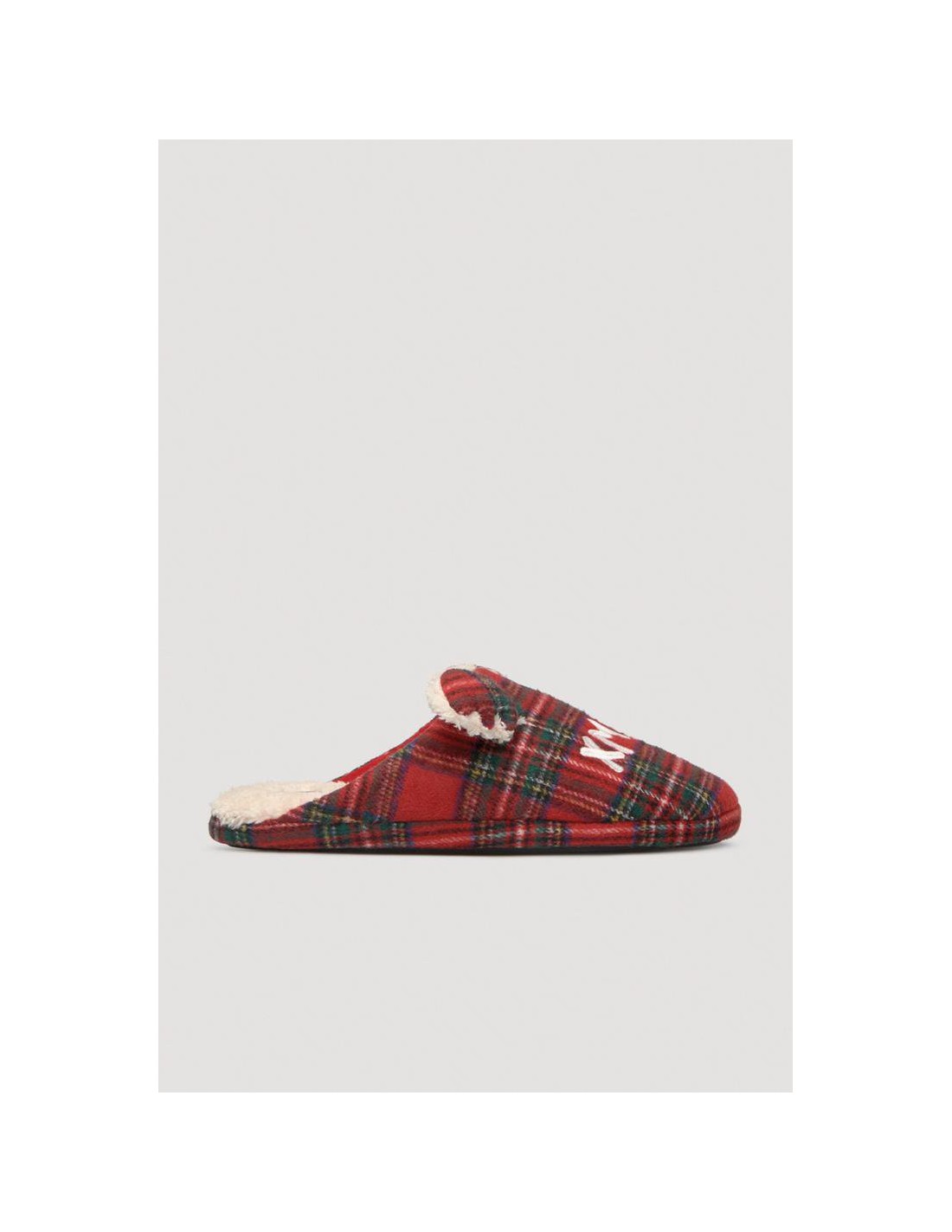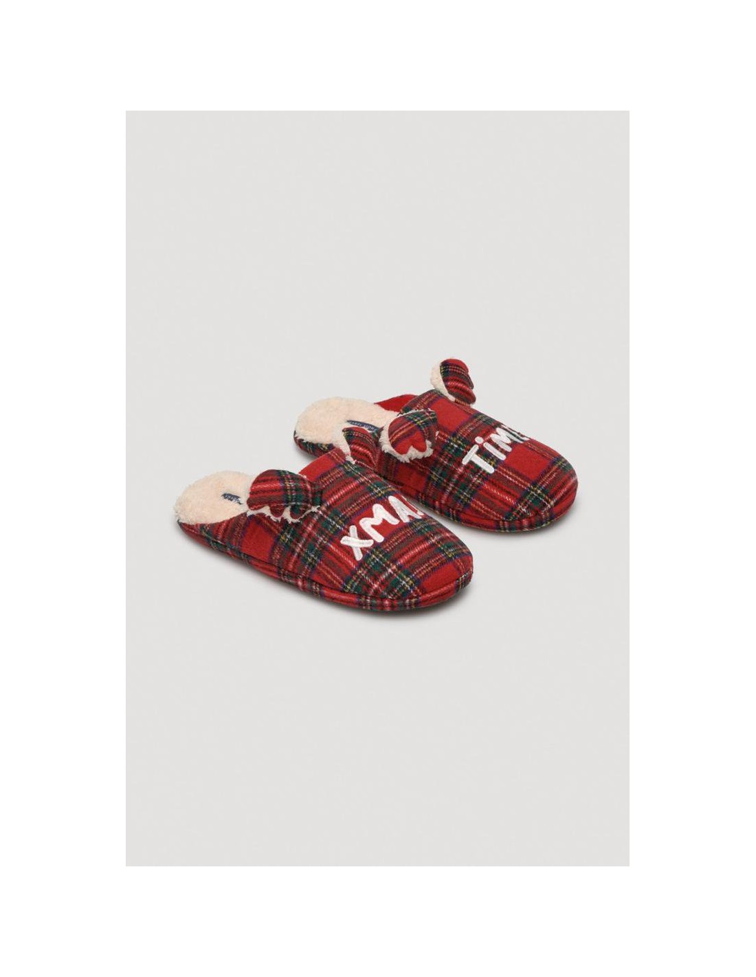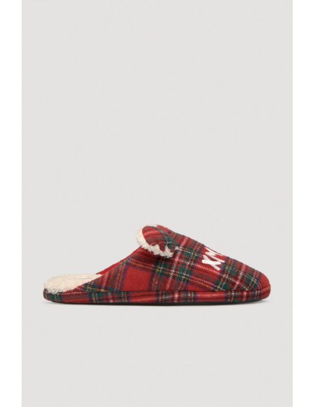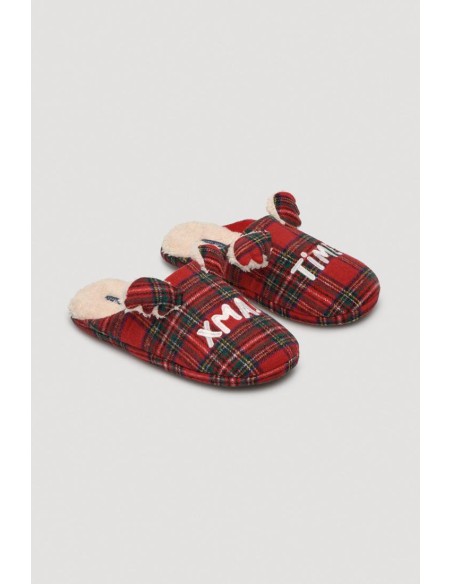 Christmas Edition. Zapatillas de casa hombre destalonada y estampado de cuadro tartán. Suaves, con tonos navideños y orejas de reno en la parte del empeine. En la parte trasera de las zapatillas el tejido es de pelo. Son divertidas de tacto extra soft e interior gustoso, cálido y cómodo. Suela rígida que se adapta perfectamente al suelo. Mismo modelo para infantil y mujer.